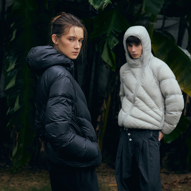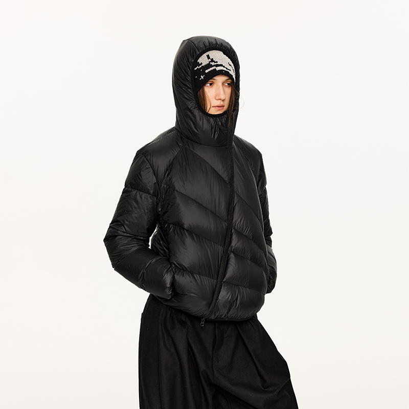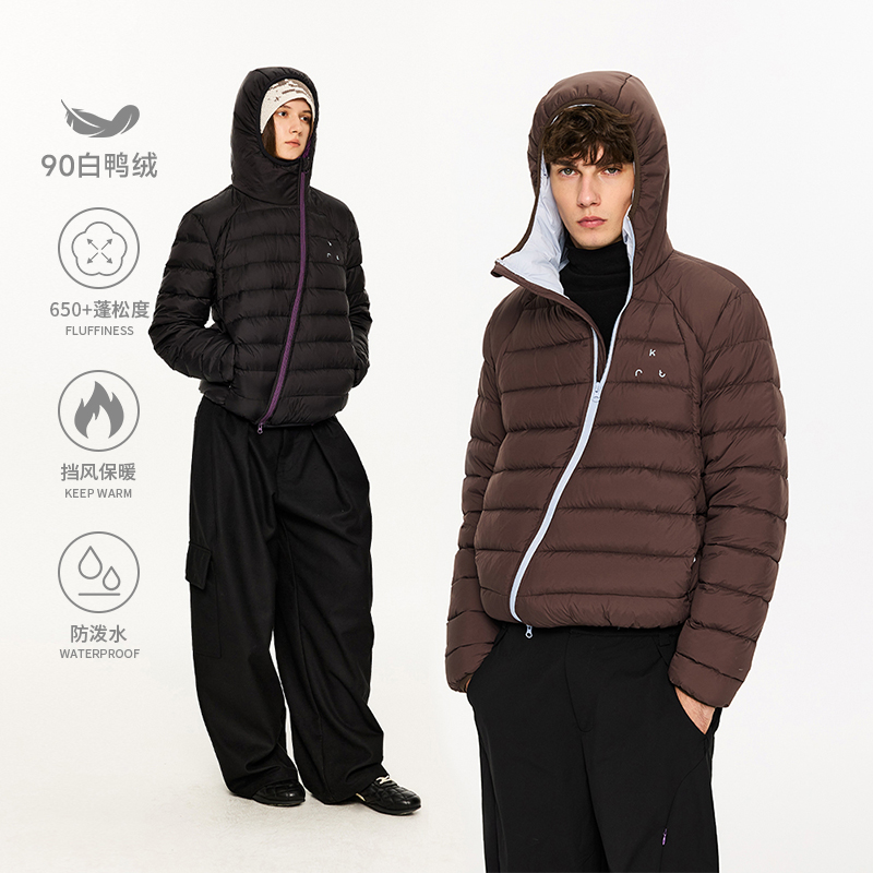 KREATE「放射线轻量化」90排骨斜拉链解构轻薄连帽羽绒服正肩防水