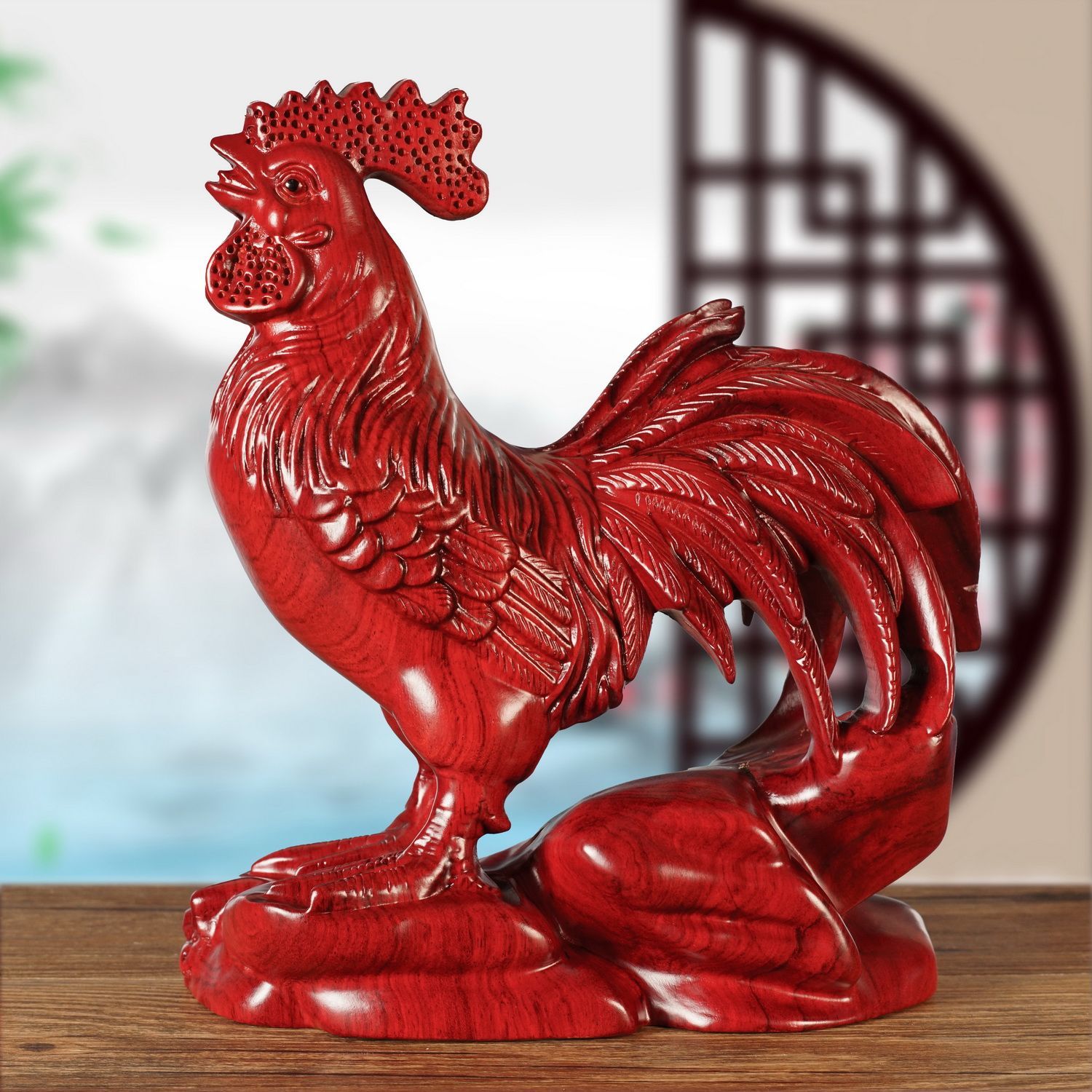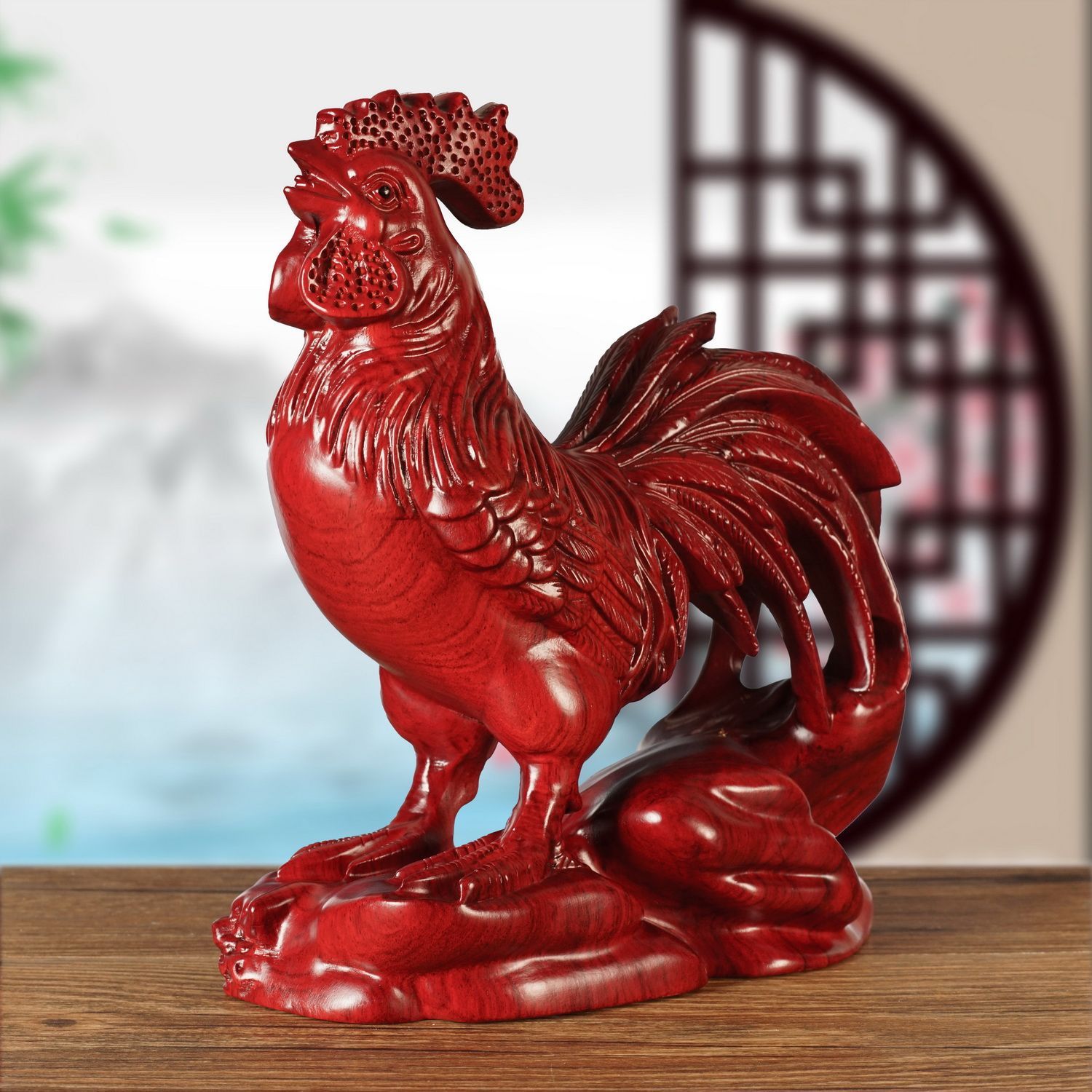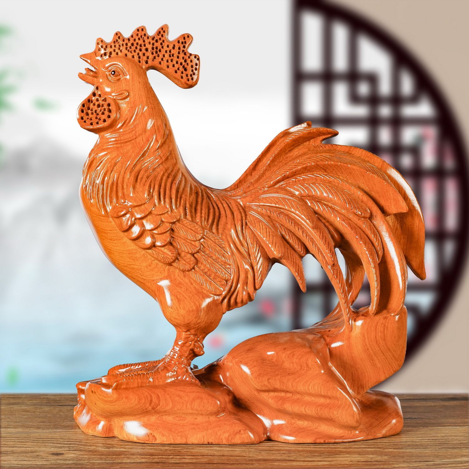 绿色实木雕鸡摆件实木雕刻大公鸡十二生肖鸡风水专用工艺品送礼品