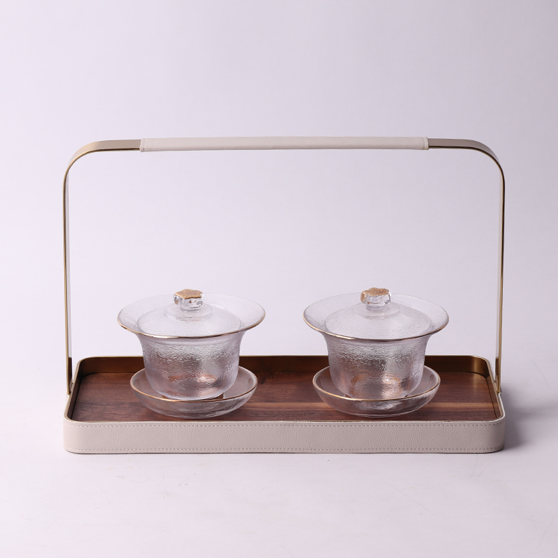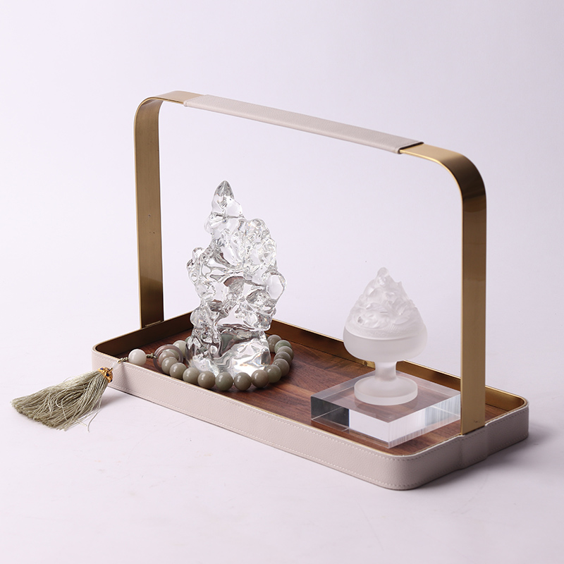 新中式胡桃木提手k托盘组合摆件样板房间售楼处展厅茶室茶几装饰