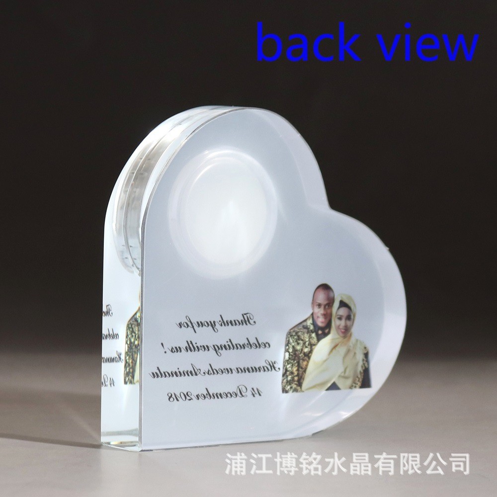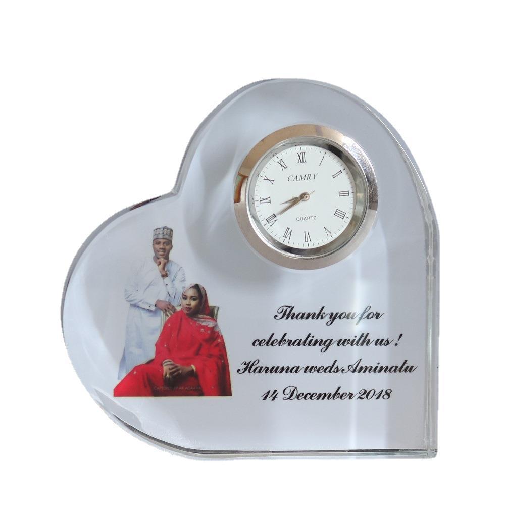 外贸心形水晶钟表摆件玻璃爱心相框纪念品创意纪念日婚庆礼品diy
