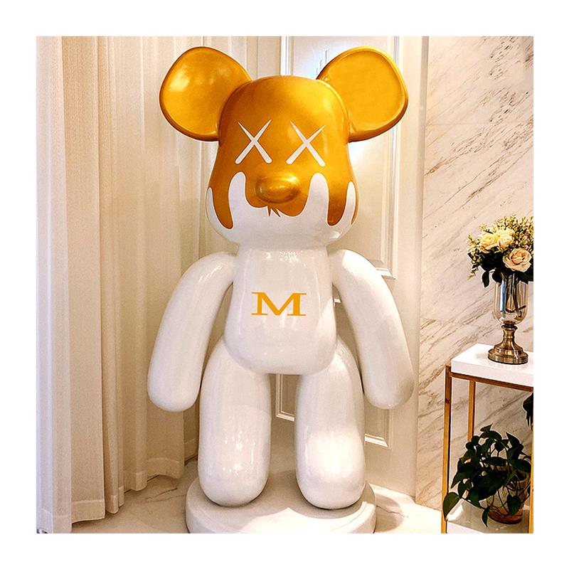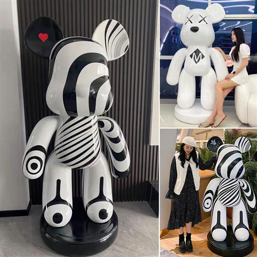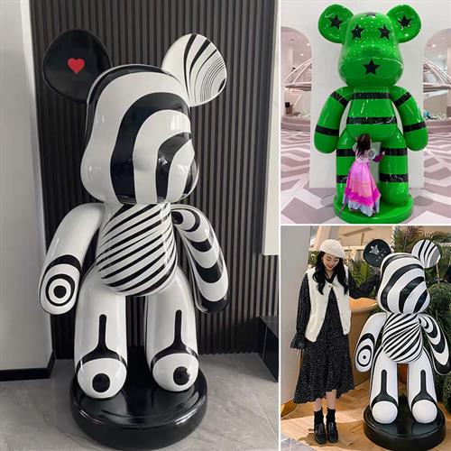 网红黑白条纹暴力熊大摆件卡通公仔玻璃钢雕塑客厅商场落地美发店