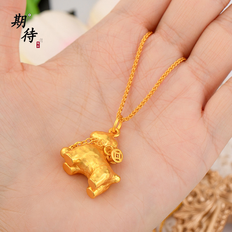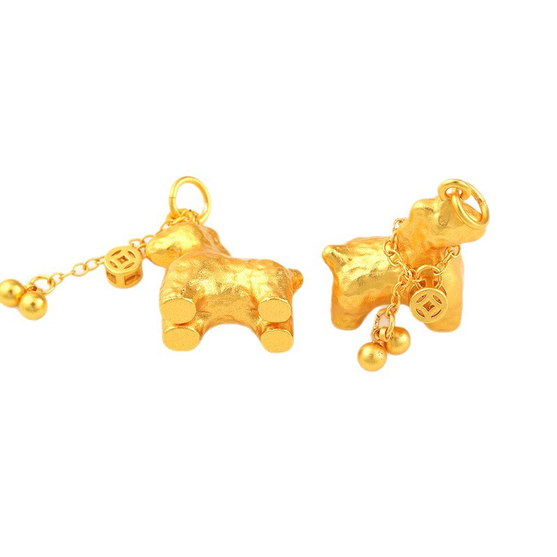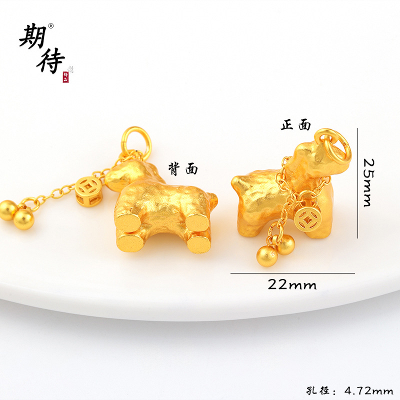 越南沙金锤纹小马流苏项链吊坠马上有钱花新中式沙金吊坠轻奢