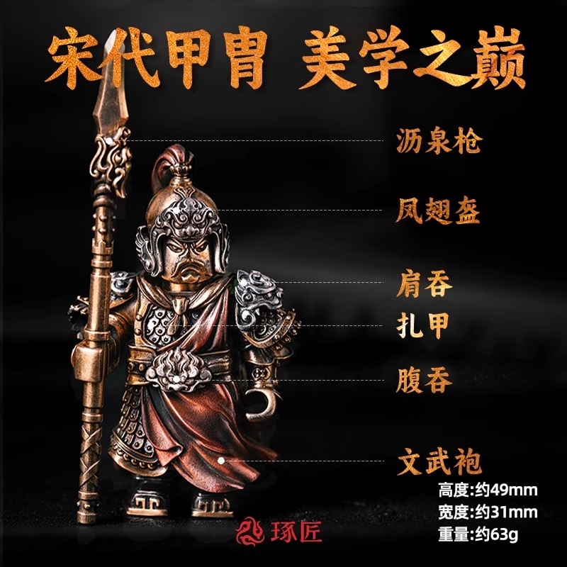 琢匠岳飞摆件宋朝金属工艺品可拆卸手办大玩家金属人仔铜手把件