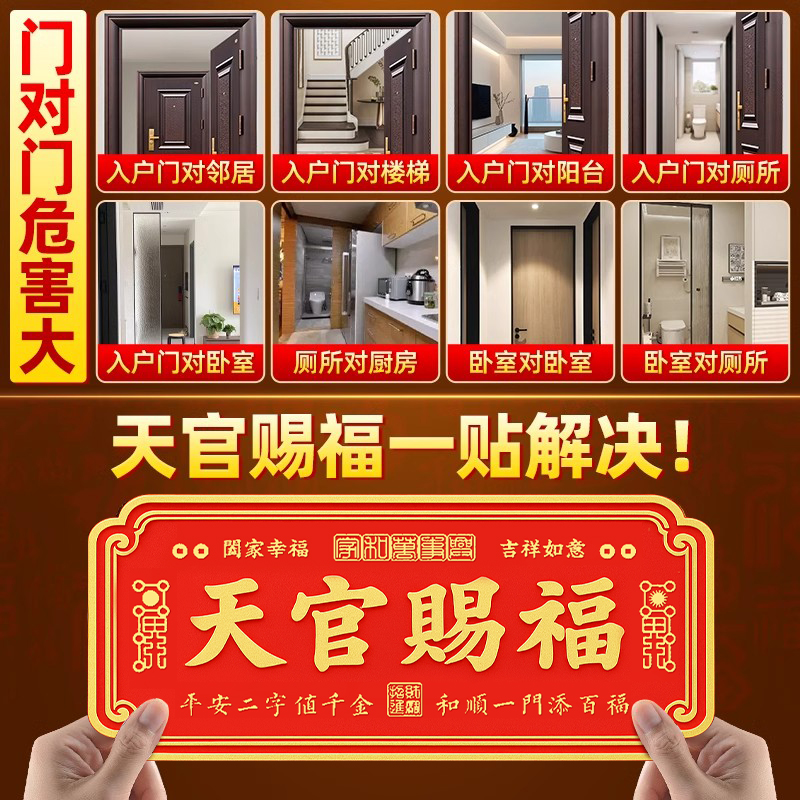 天官赐福门贴门对门金属牌贴挂件解决入户大门对邻居电梯窗户横款