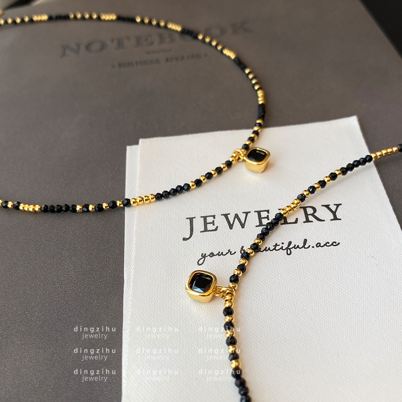 黑色天然石串珠项链女复古轻奢小众设计高级感锁骨链脖子配饰颈链