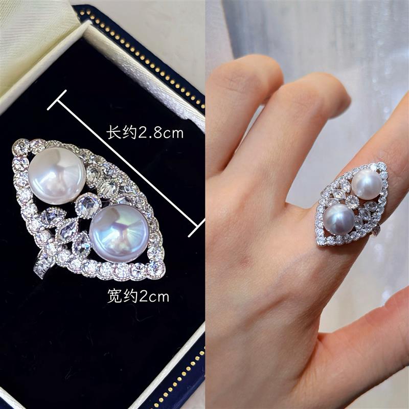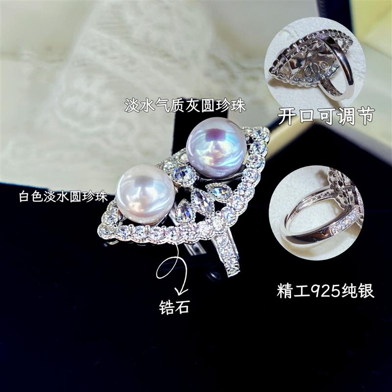 诸暨源头蕾丝复古双珠镂空S925纯银天然淡水圆珍珠开口可调戒指