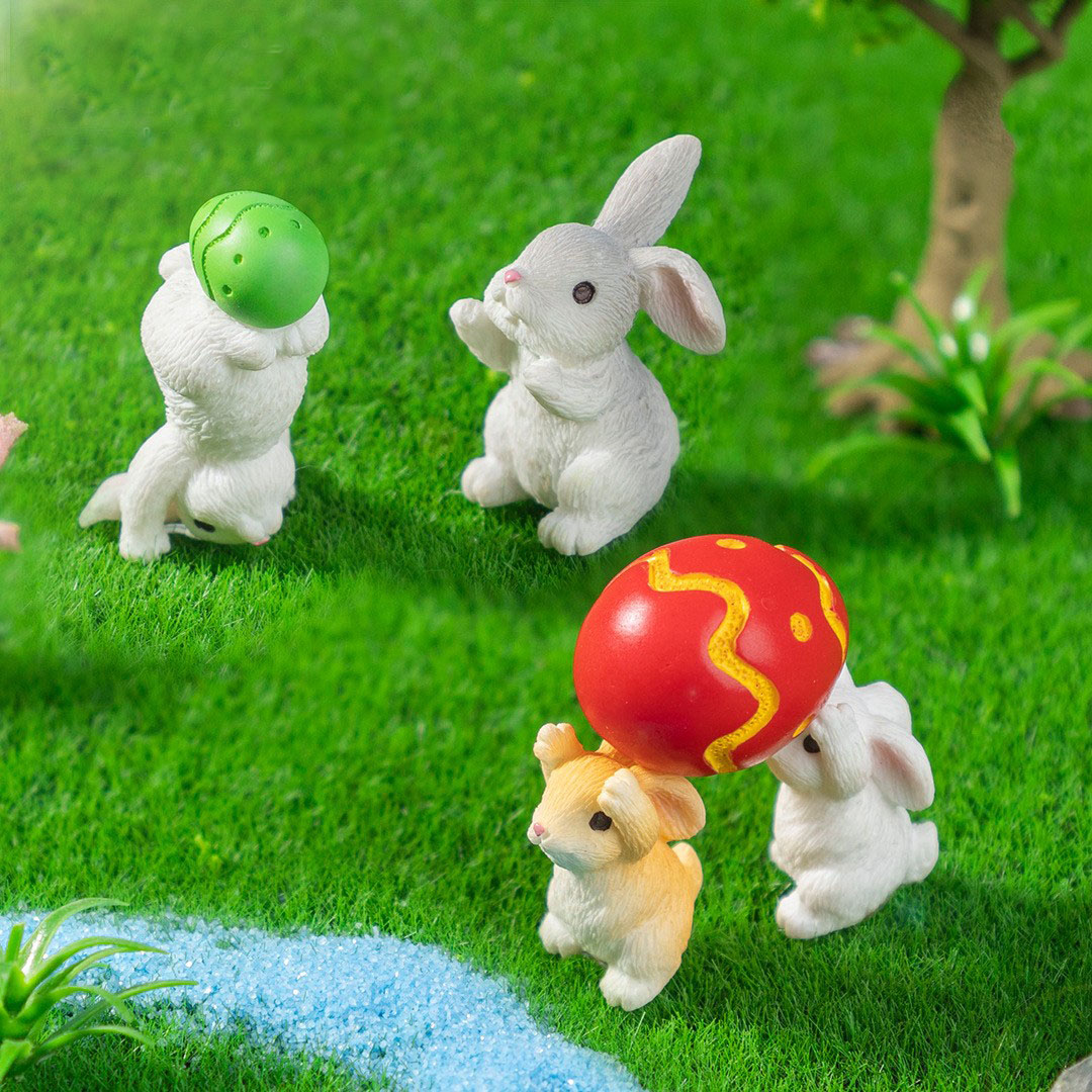 微景观桌面动物diy模型摆件手工盆景仿真抱蛋兔复活节小兔子造景