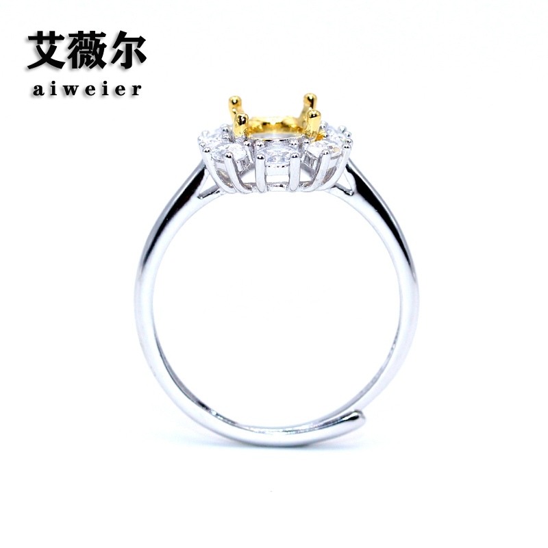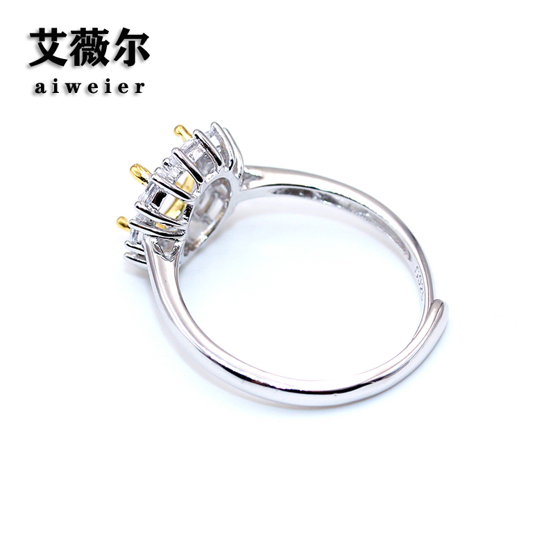 精工925纯银戒指空托加工镶嵌双色戒托宝石定制18K金6*7-6*8-8*10