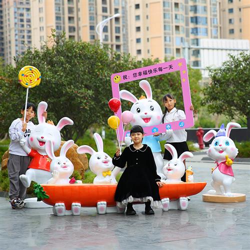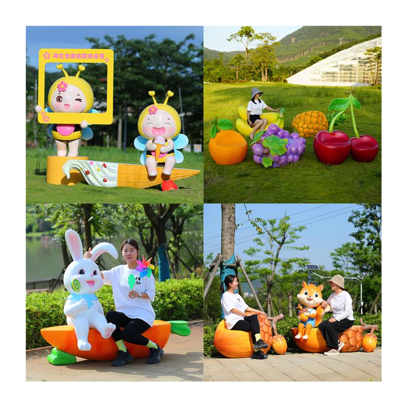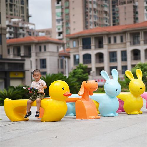 幼儿园商场卡通兔子玻璃钢动物坐凳子景区座椅恐龙水果雕塑大摆件