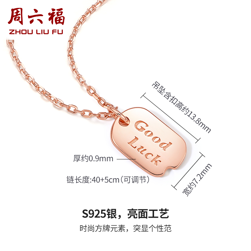 周六福S925幸运福牌纯银项链女2022年新款链坠吊坠轻奢小众设计感