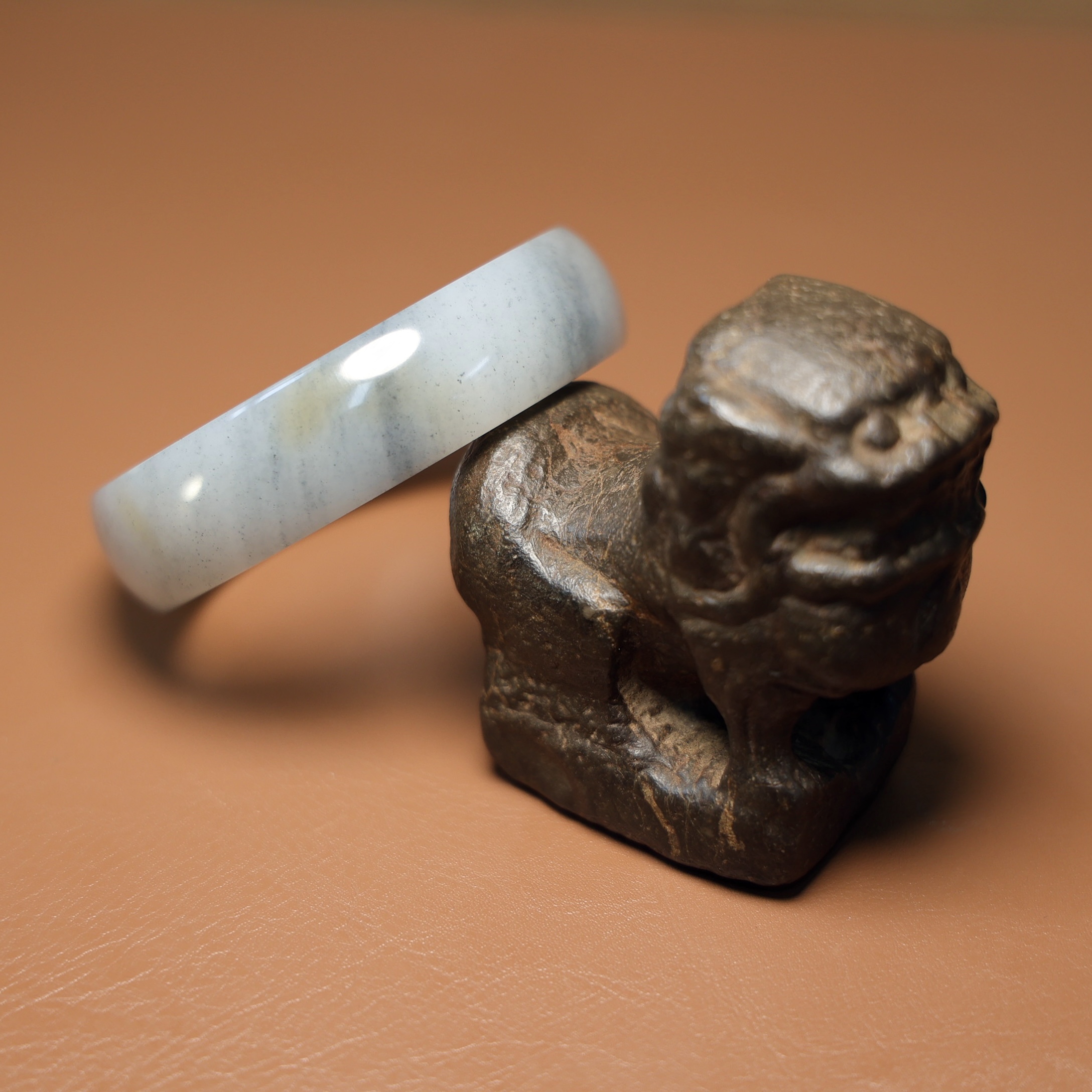 秋会长的和田玉新疆天然青花玉籽料手镯女士镯子56.5mm圈口