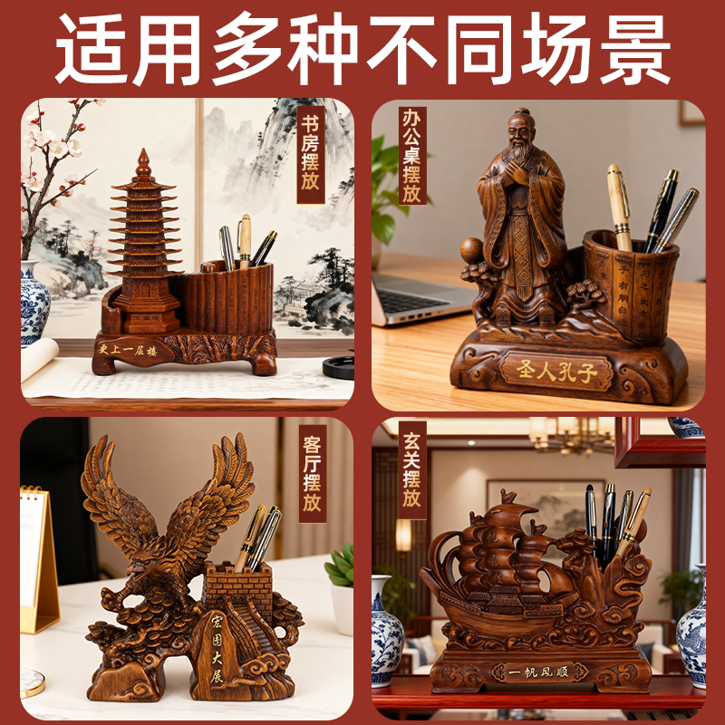 文昌塔笔筒摆件9九13十三层仿木质学生书房办公室桌面收纳盒礼物