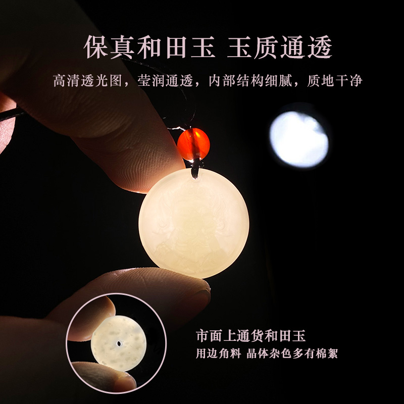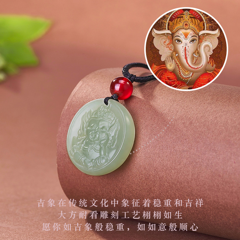 保真天然和田玉吉象如意吊坠双面雕刻玉坠玉佩项链挂件护身符