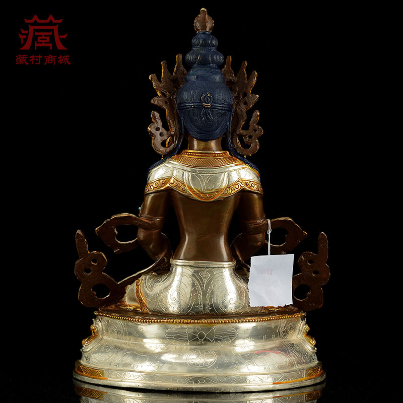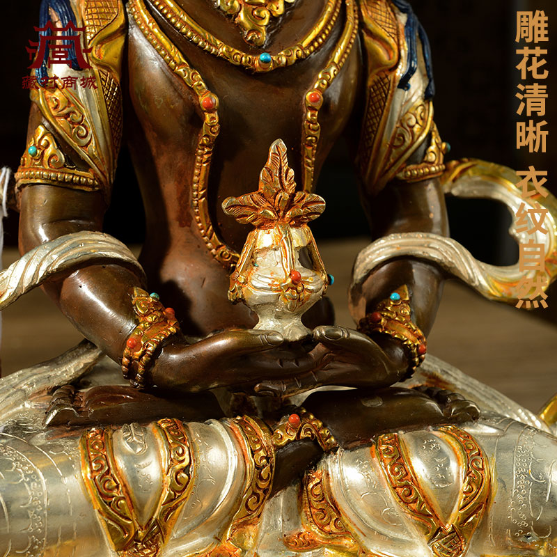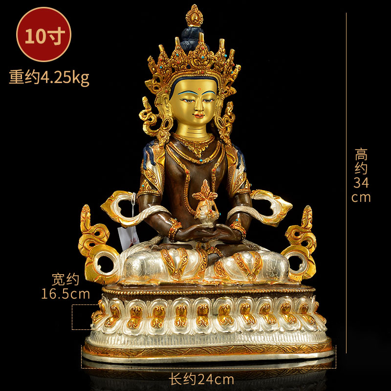 尼泊尔进口《常寿佛》室内家用鎏金鎏银《长寿佛》铜像摆件