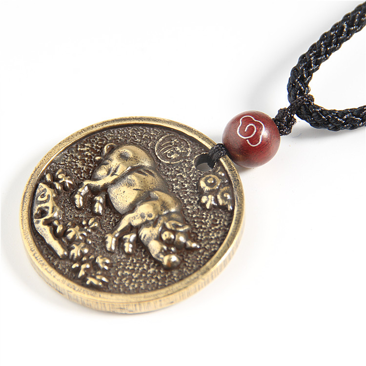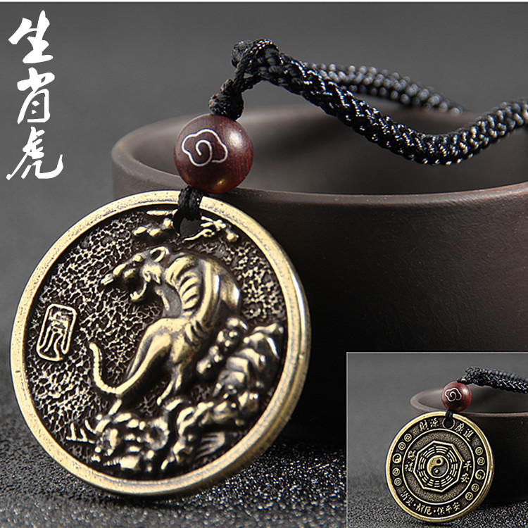 纯铜手工十二生肖虎牛马吊坠挂件本命年护身符本命年男女项链饰品