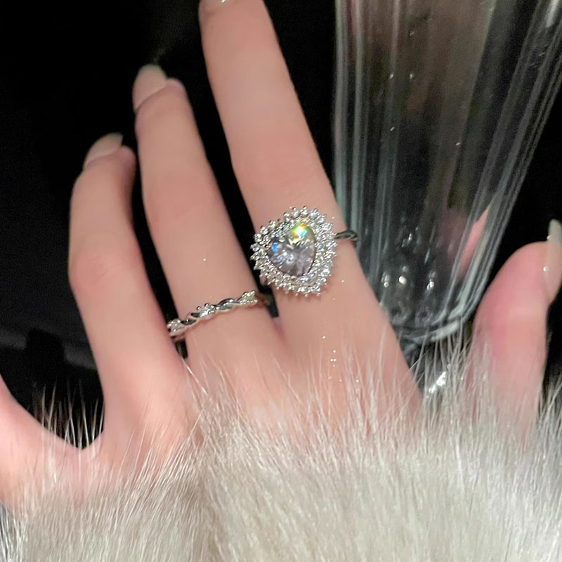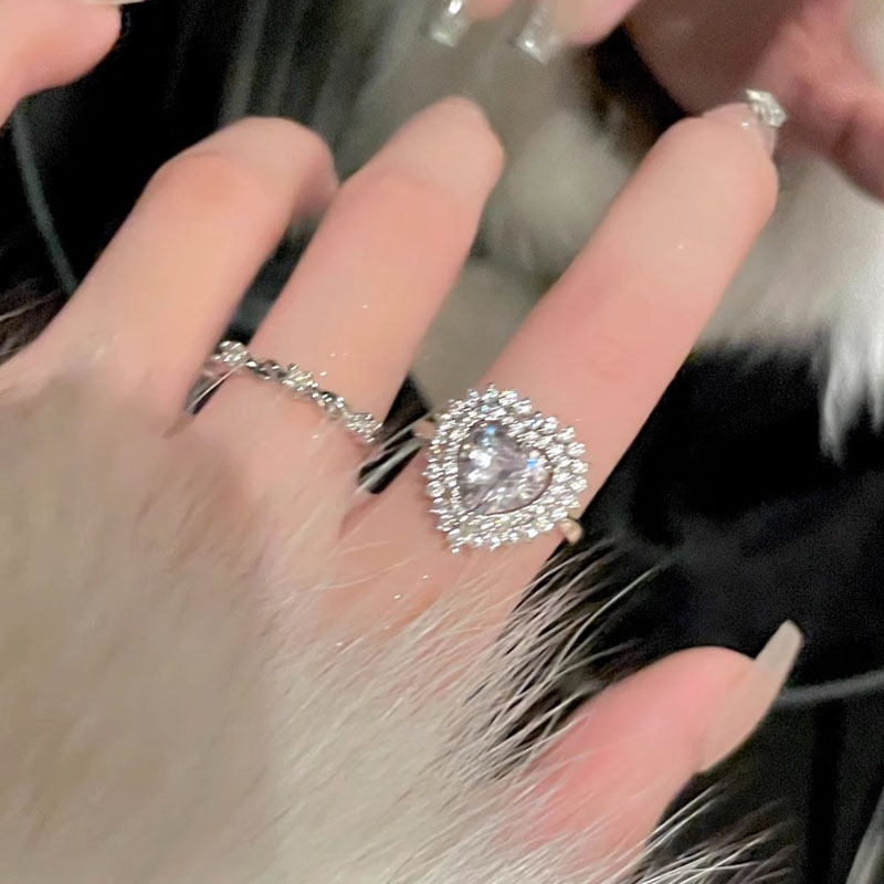 法式满钻锆石爱心戒指女轻奢潮小众设计高级食指戒甜酷ins冷淡风