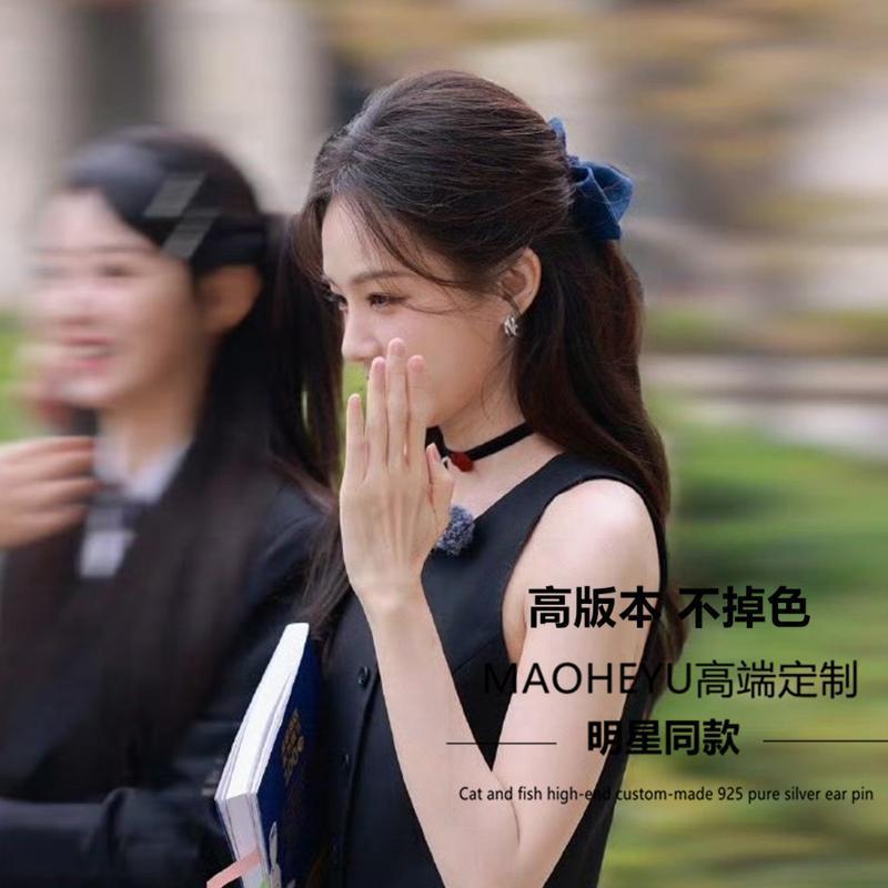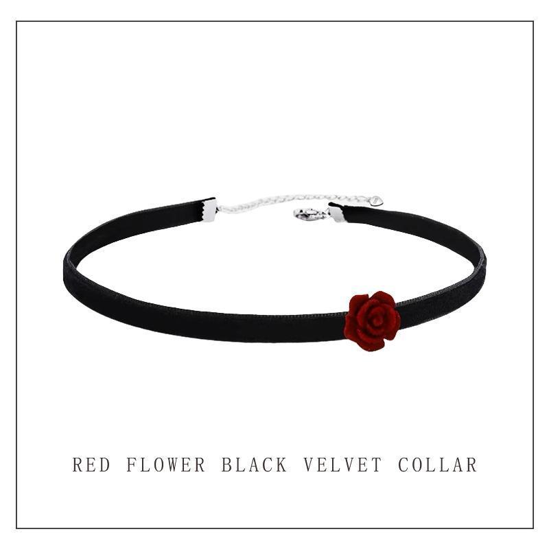 不掉色推理社李一桐同款黑色红花丝绒项圈女颈链小众法式潮