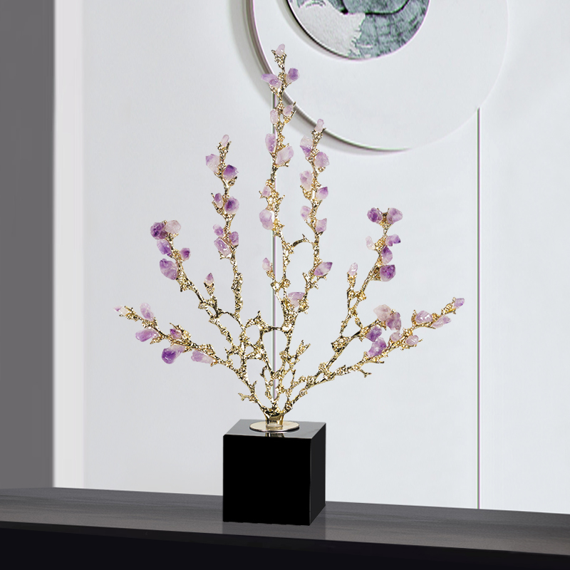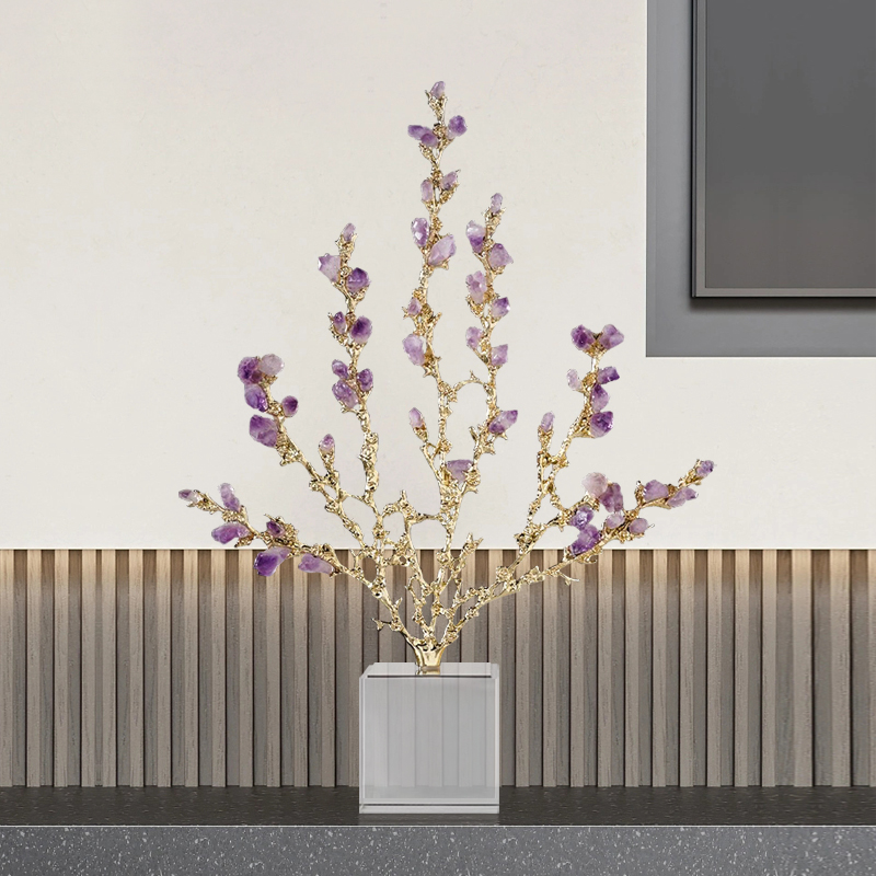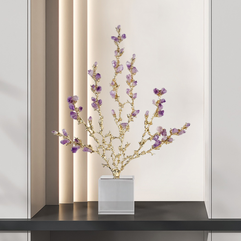 京茵现代轻奢紫水晶花装饰品样板间书房床头柜创意工艺品艺术摆件