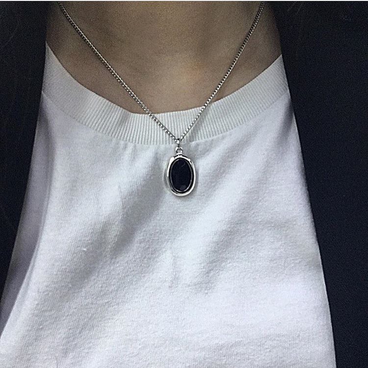 nonenon张艺兴同款椭圆形吊坠钛钢项链 exo旁伯贤oval防过敏项链