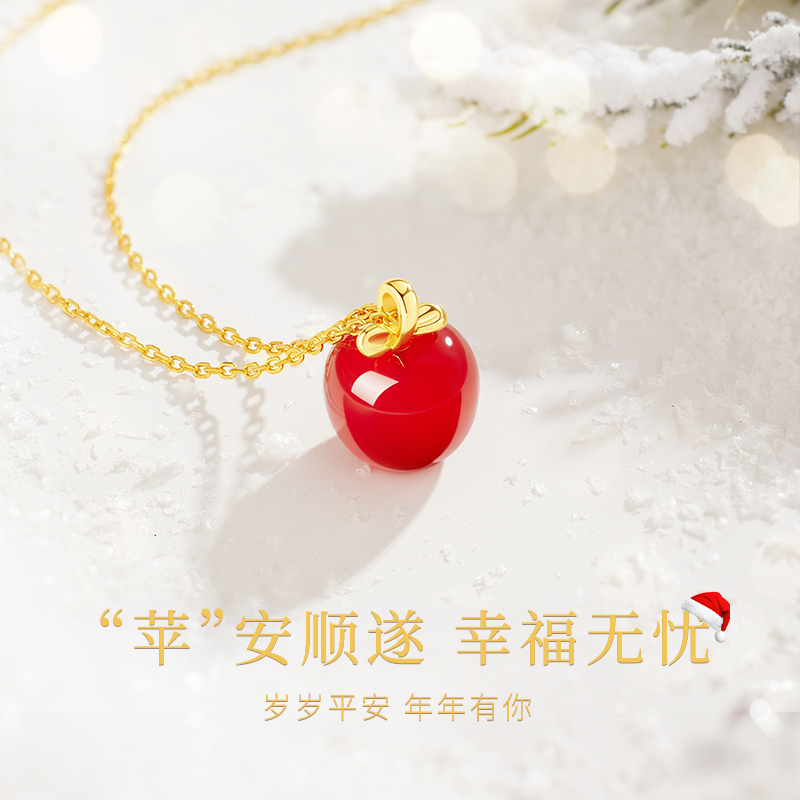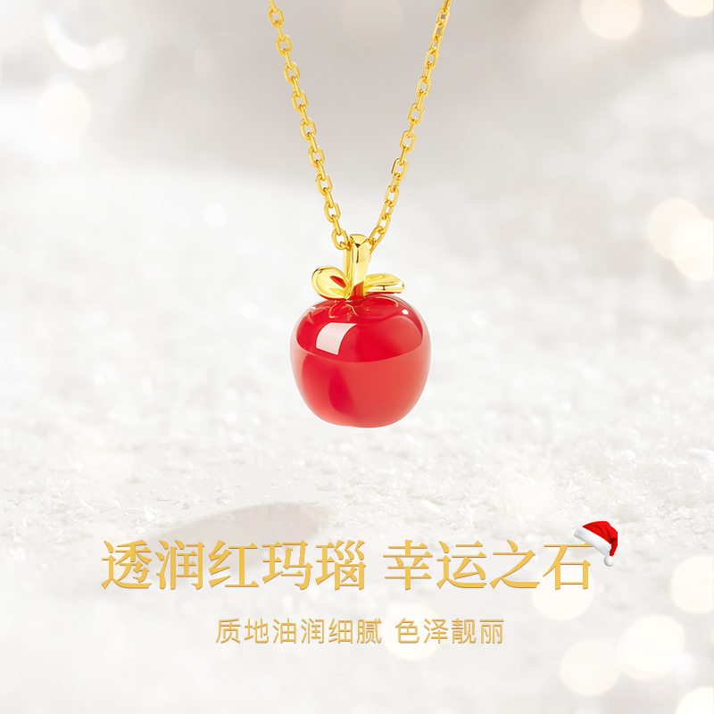 中国黄金央创苹果纯银项链女生款红玛瑙吊坠生日礼物送女朋友S925