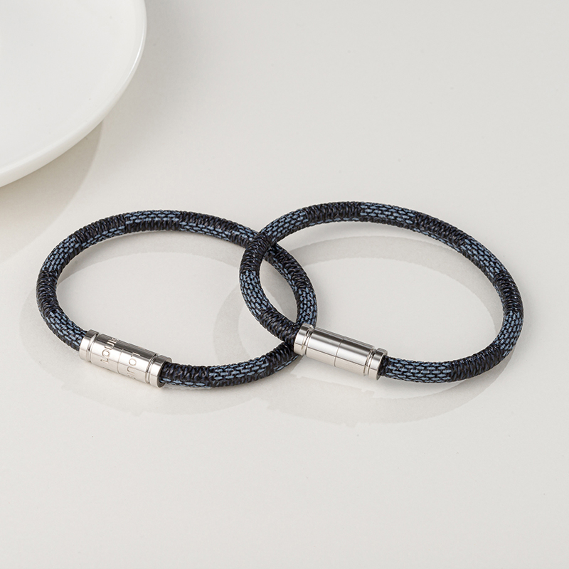 银扣男款黑灰时尚金属压印logo手镯百搭潮人高端皮绳个性男生手链
