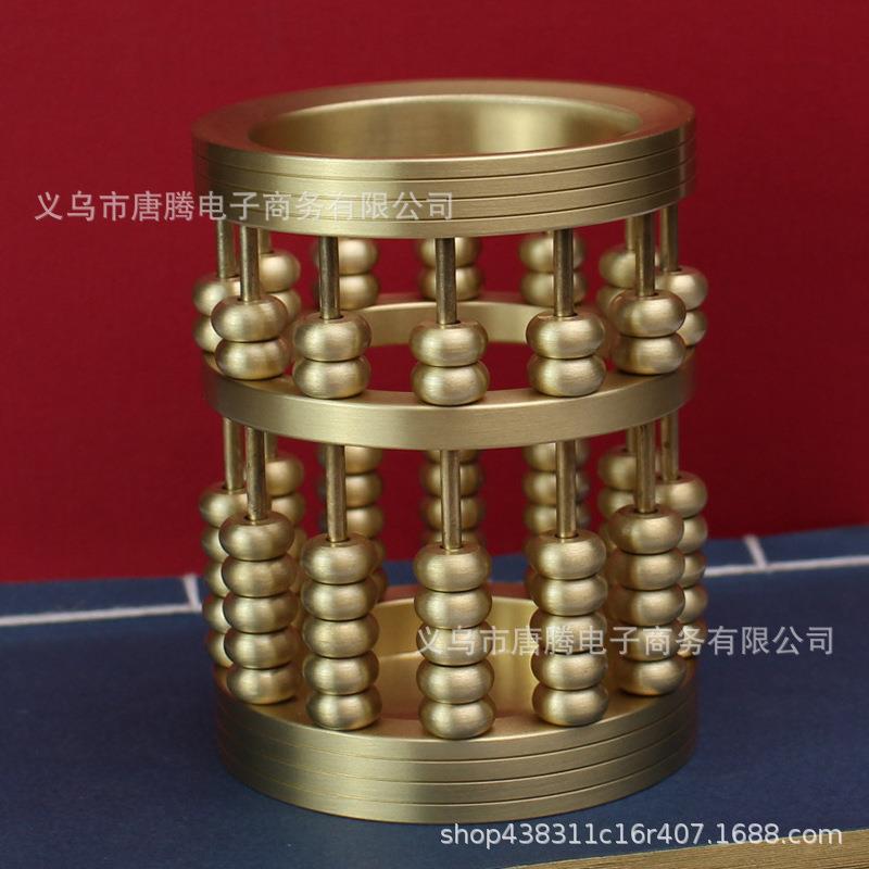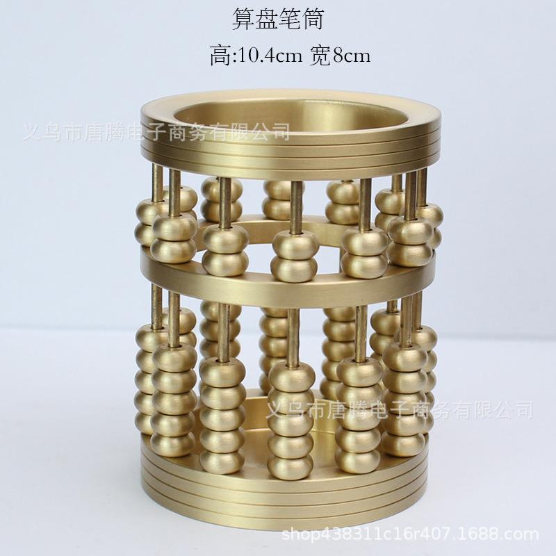 黄铜算盘笔筒算盘黄金万两办公室桌面摆件金属工艺品小号纯铜铜器
