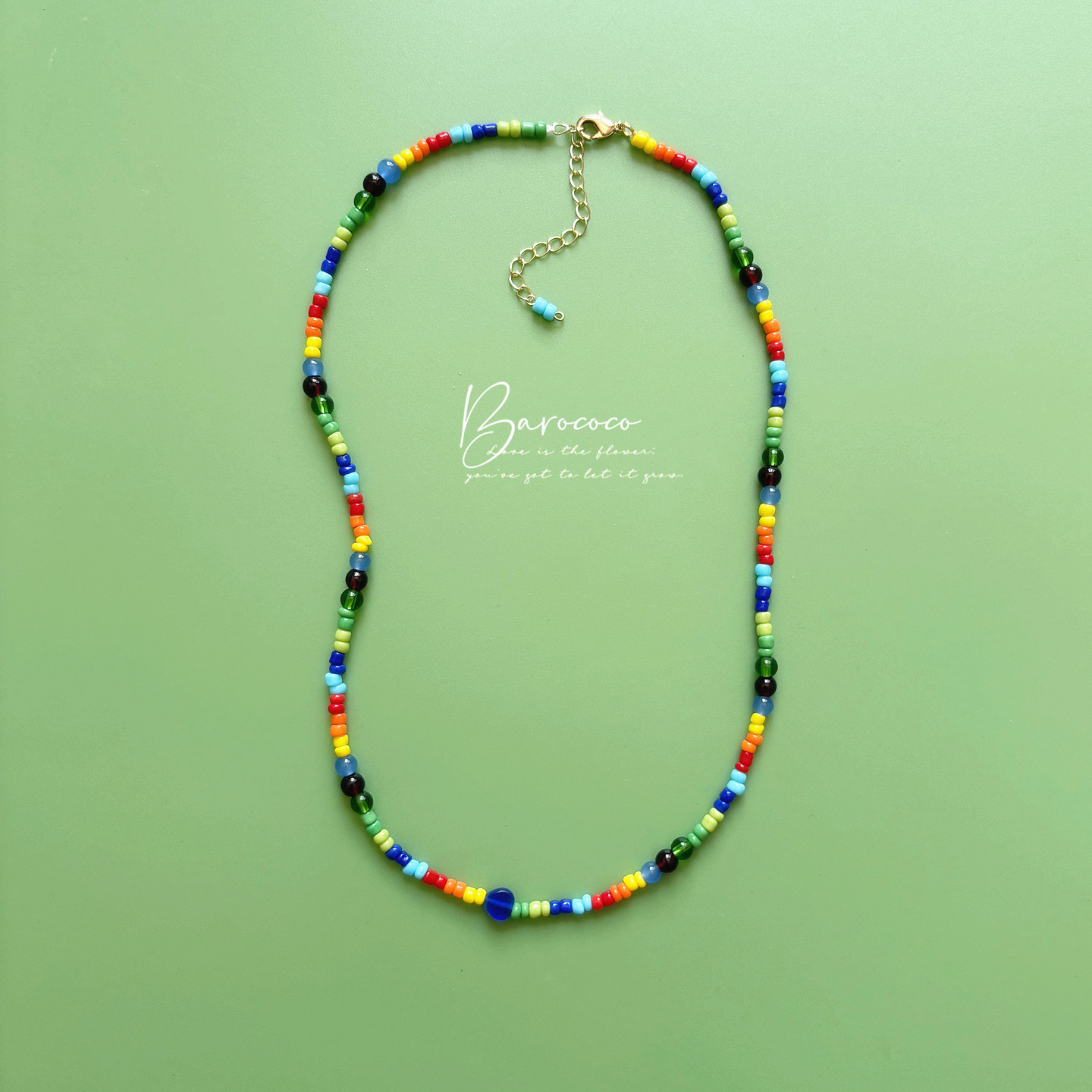 日单泫雅风陶瓷米珠+琉璃小圆珠多巴胺彩虹色串珠短项链女锁骨链