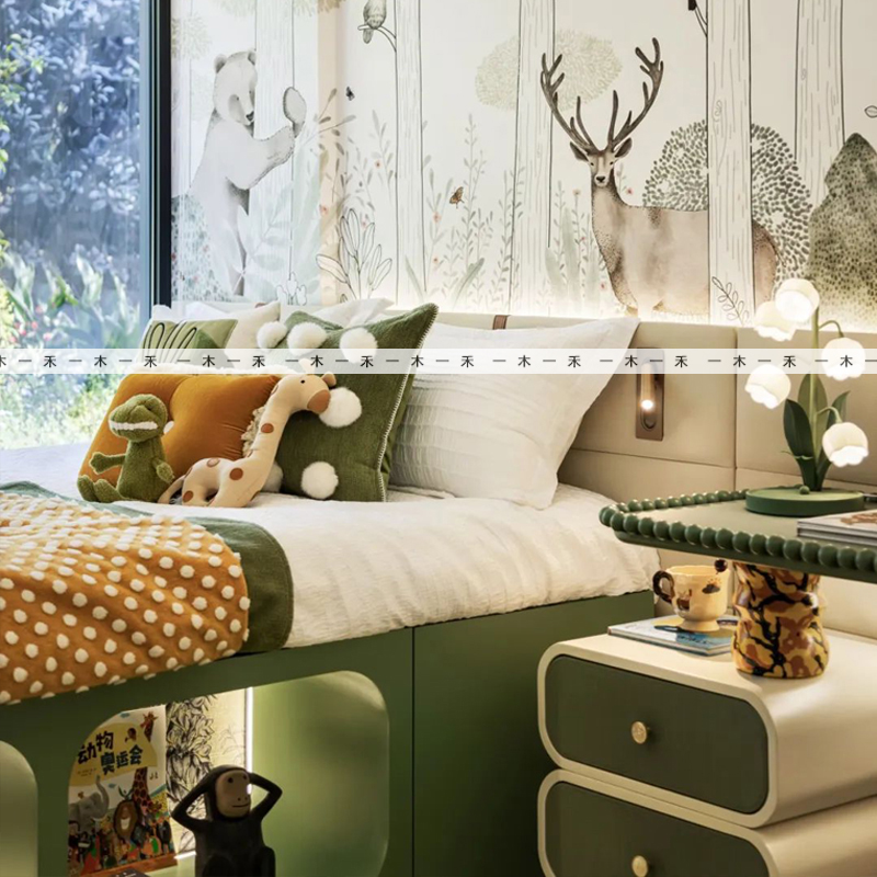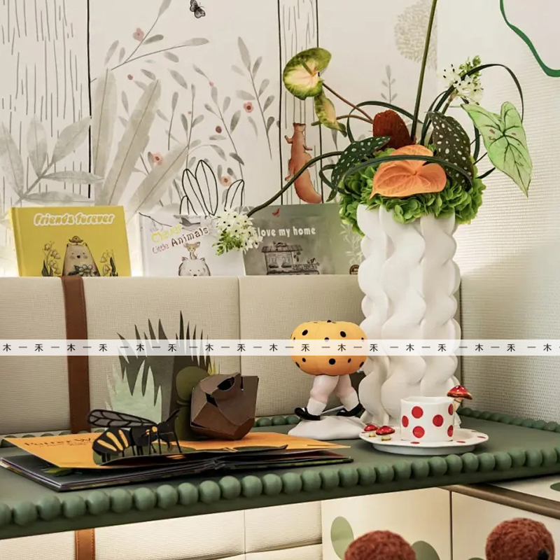 现代样板间女孩房绿色森林主题摆件男孩房桌面花艺立体书软装饰品