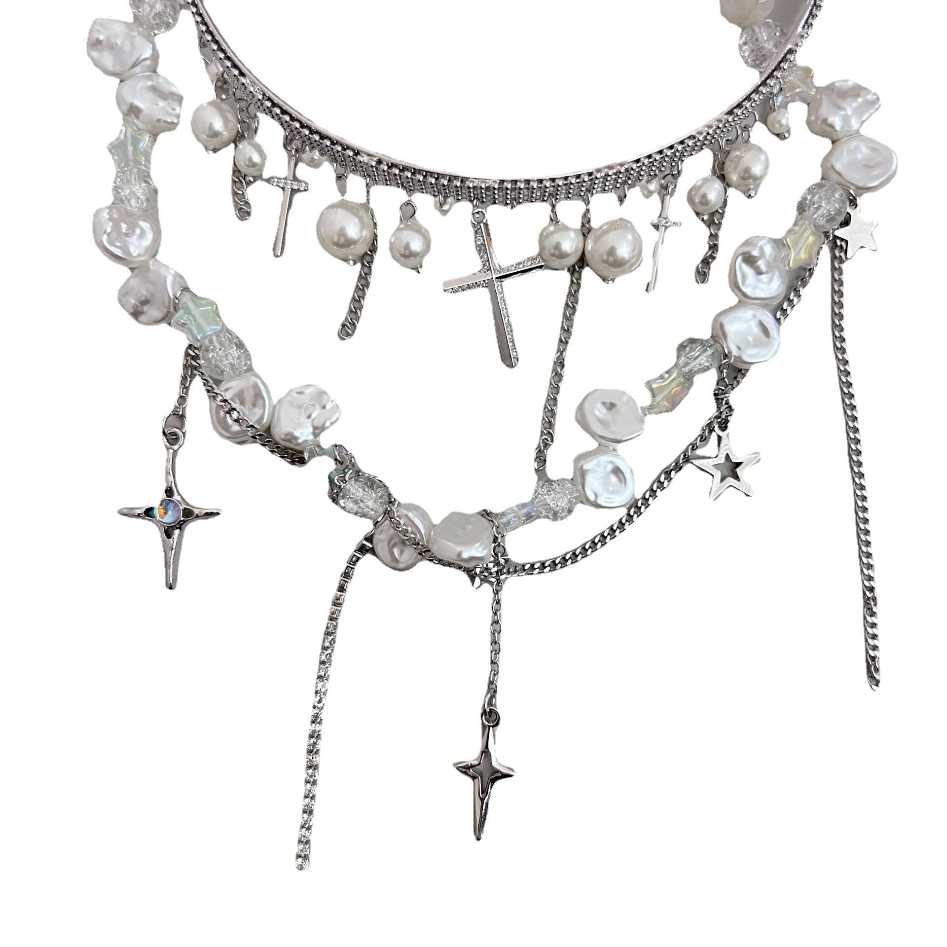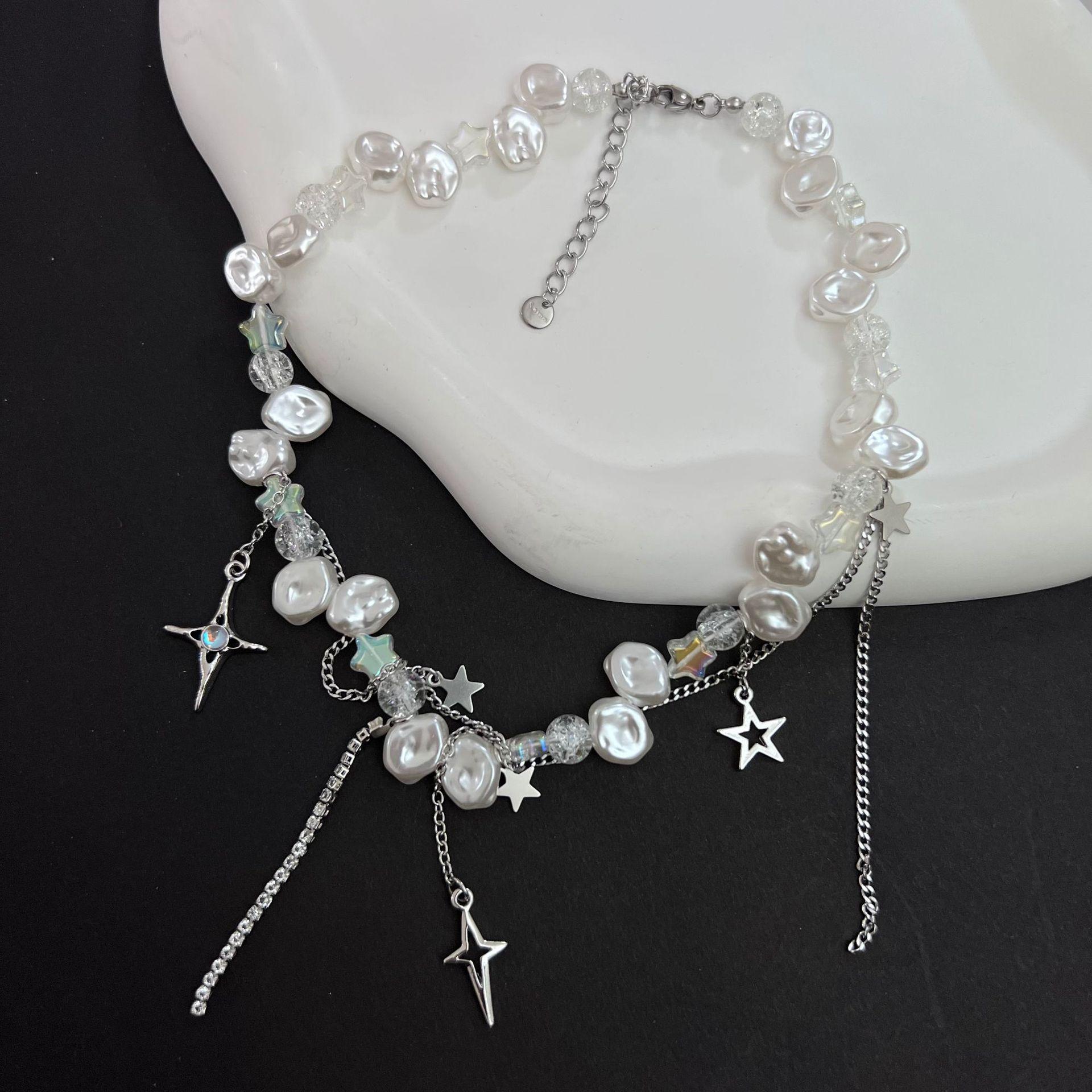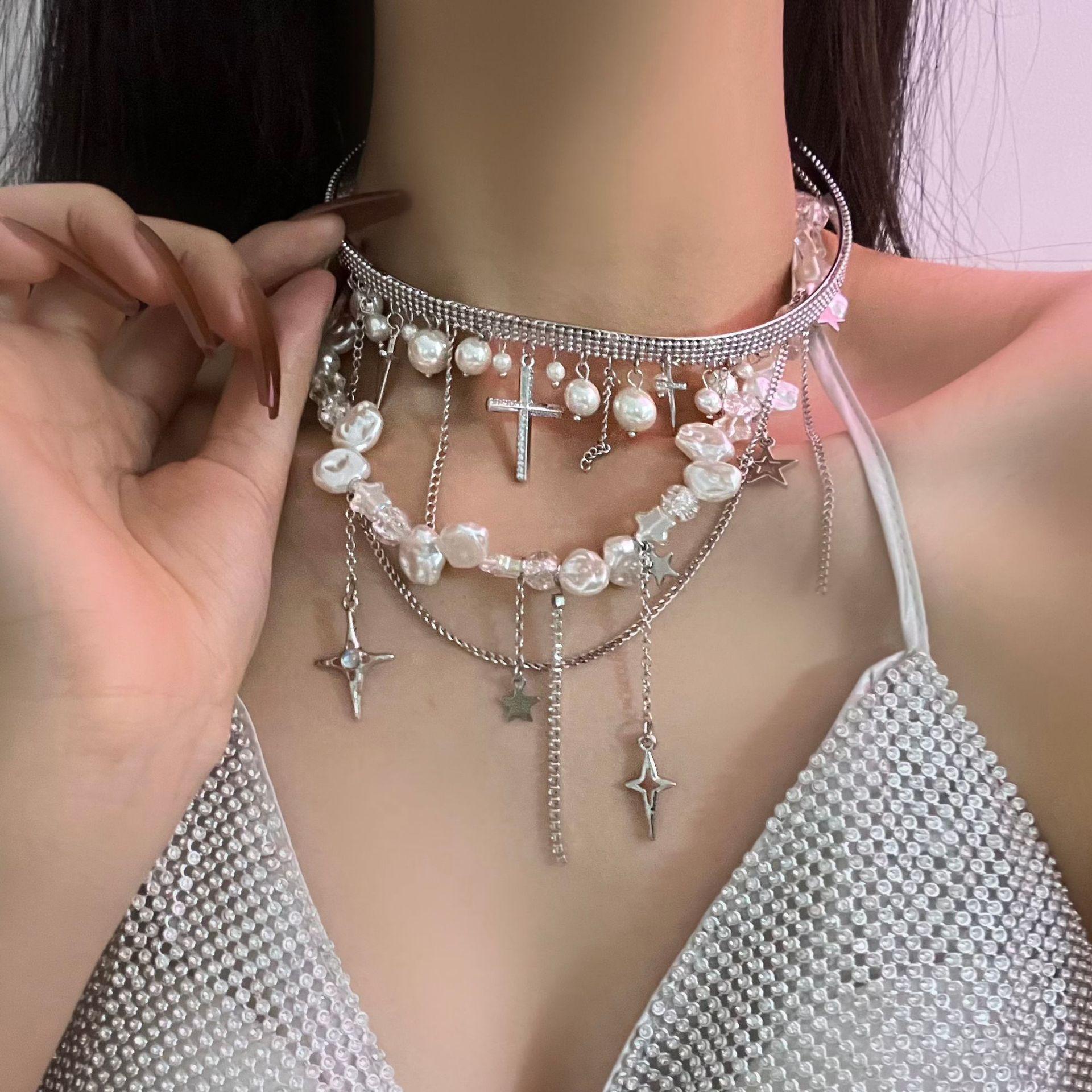 结构超美!芒星坠落设计手工串珠巴洛克珍珠缠绕颈链项链女轻奢小