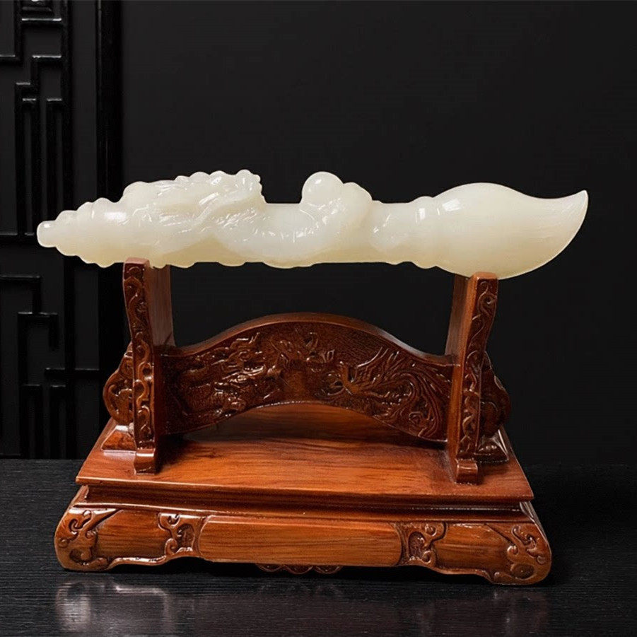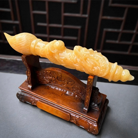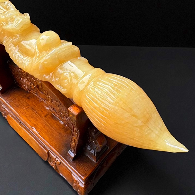 天然玉石发大笔财毛笔摆件黄玉白玉单龙戏珠毛笔书房家居装饰礼品