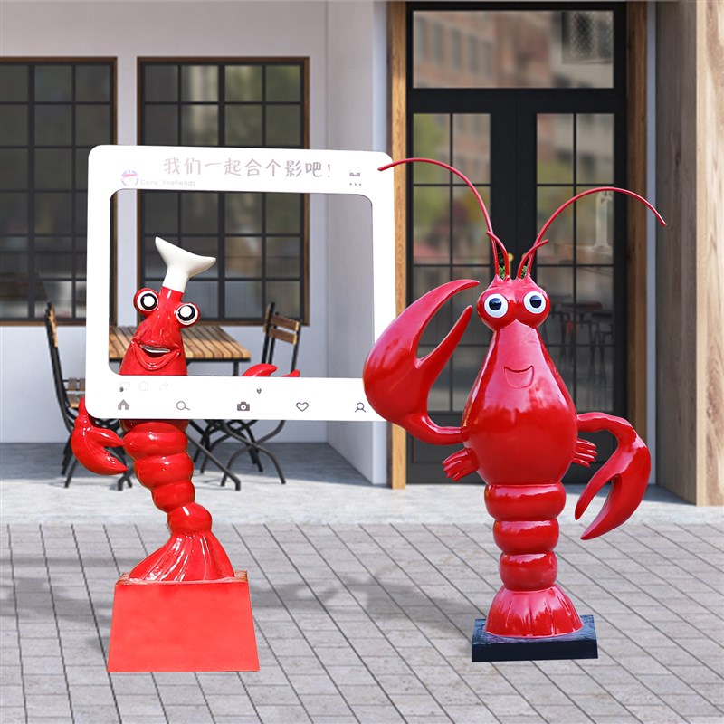 玻璃钢小龙虾模型雕塑酒楼大排档招牌装饰品海鲜烧烤门店迎宾摆件