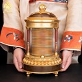 语狮子缩微胶片楞观严转经简汽车摆件太阳能电池车载转动桶德田