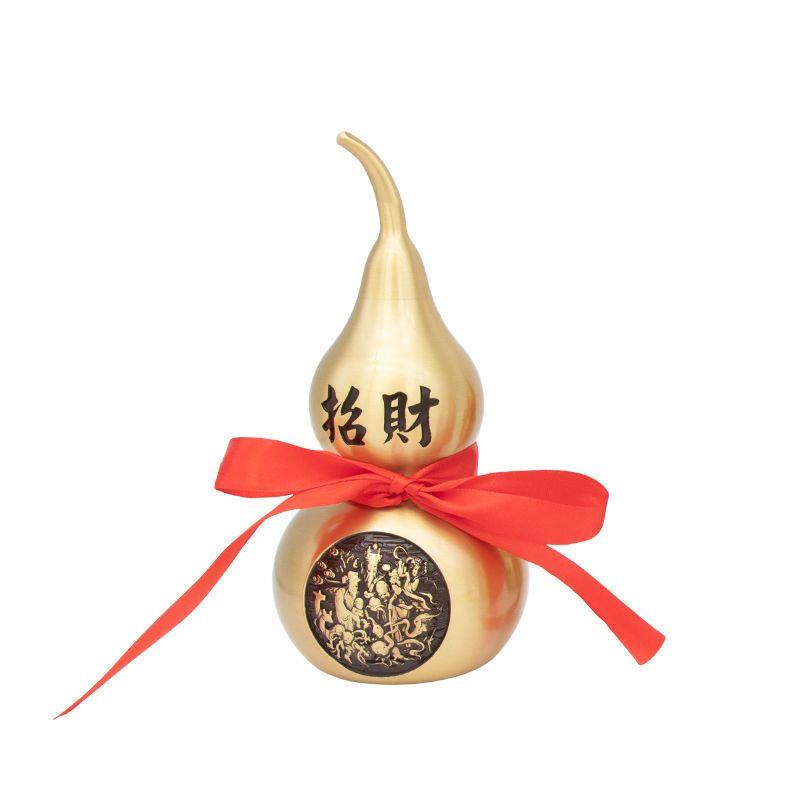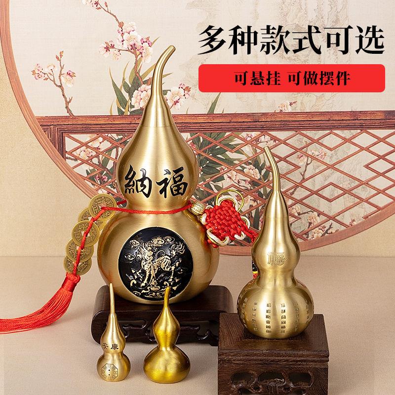 镇宅招财开 口纯黄铜葫芦摆件客厅五帝钱挂件空心葫芦装朱砂工艺