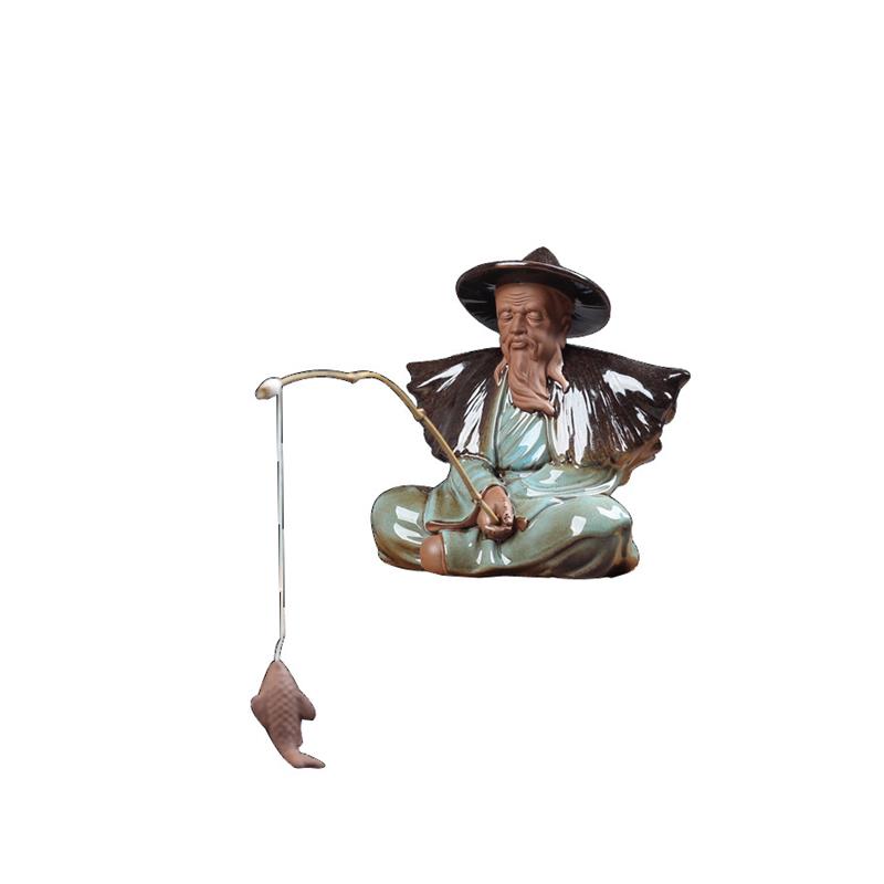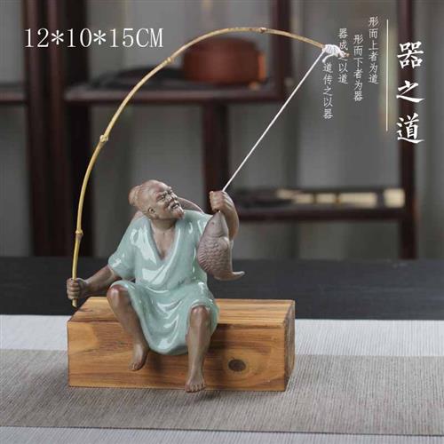 陶瓷姜太公钓鱼客厅摆件鱼翁鱼缸沉底装饰假山根雕水族箱意境造景
