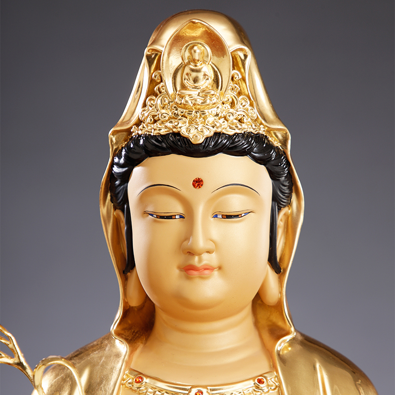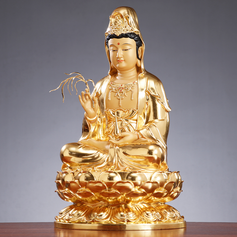 台湾纯铜贴金观音菩萨佛像供奉家用大慈大悲南海观世音摆件保平安