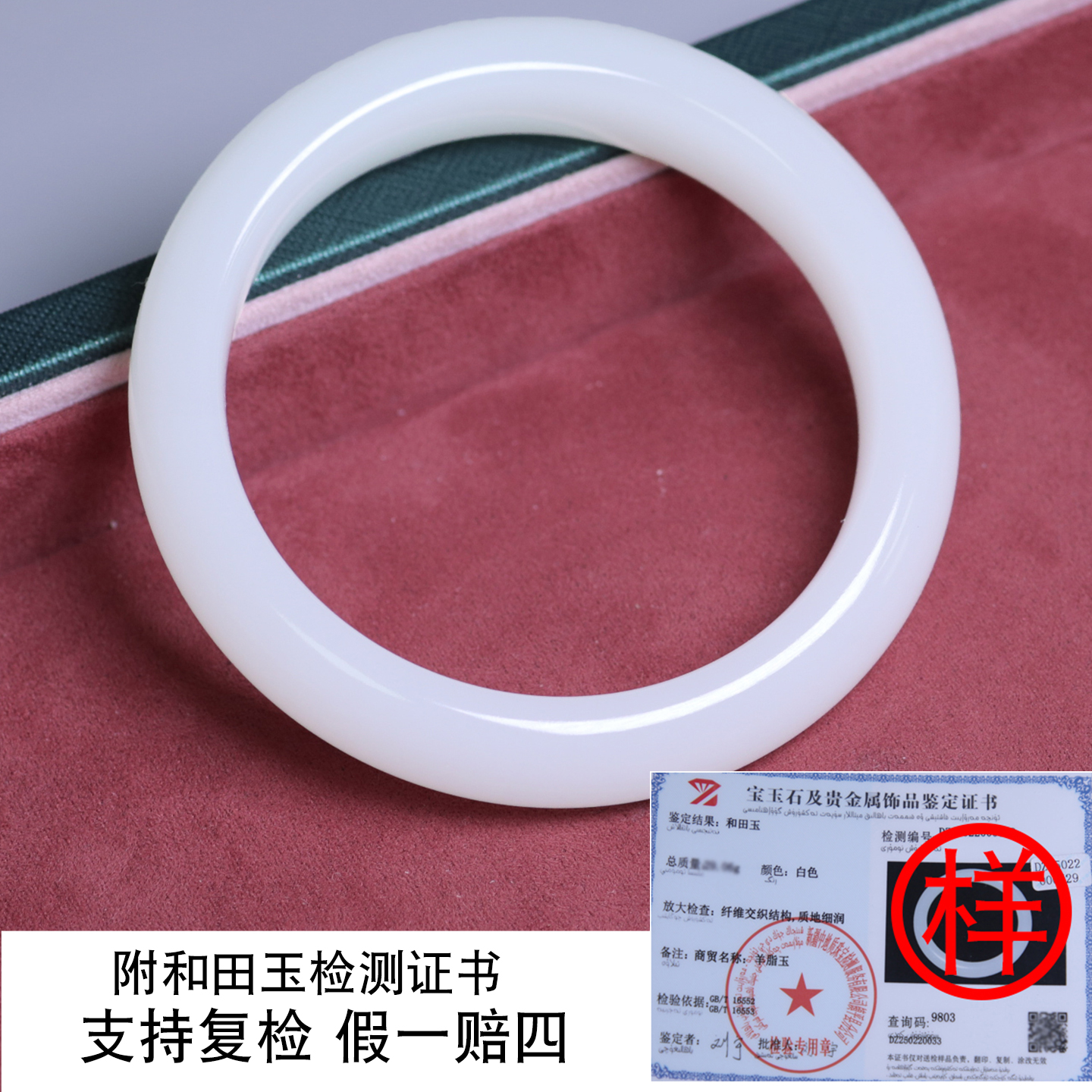 珪宝55.3mm和田玉羊脂玉宽条手镯女款山流水玉镯子天然玉石带证书