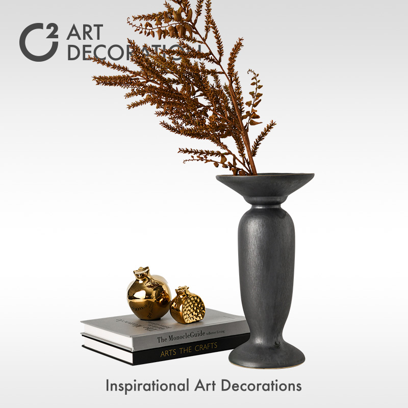 新中式轻奢几何线条花器样板房间售楼处配饰酒柜玄关软装饰品摆件