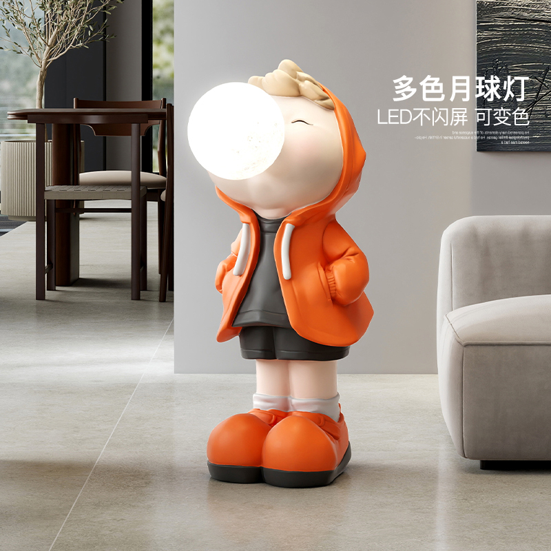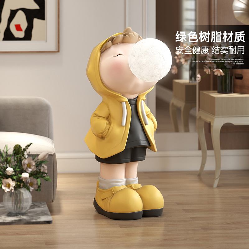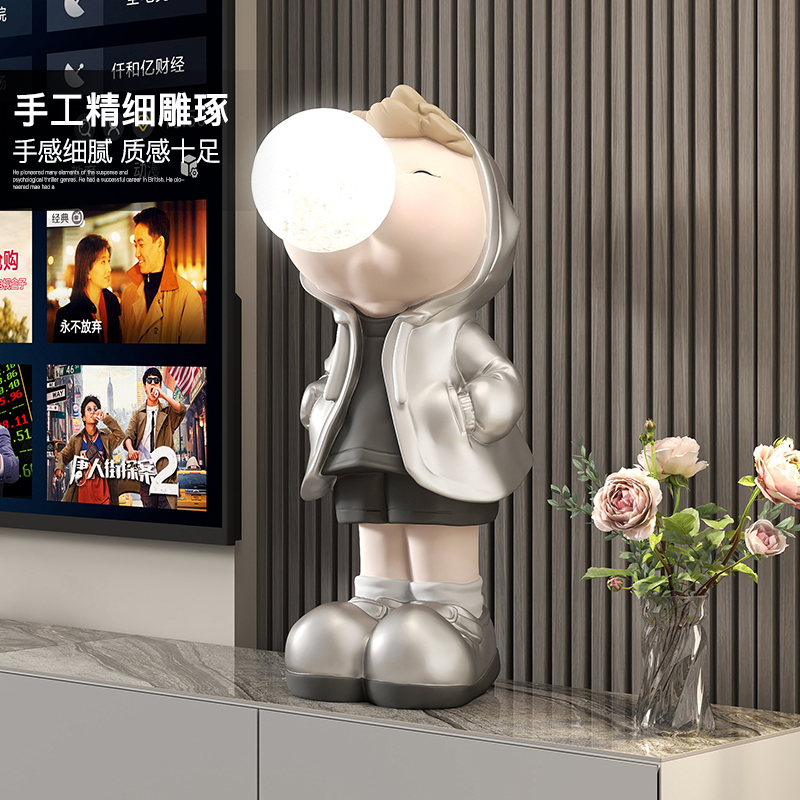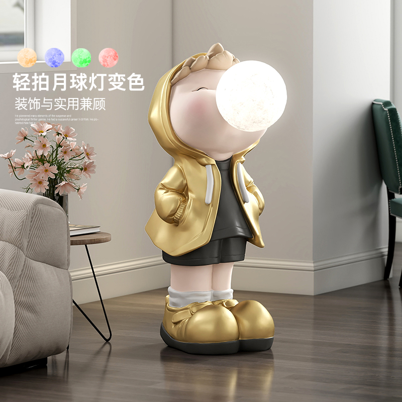 卡通男孩大型落地摆件客厅电视柜家居装饰品时尚灯饰乔迁新居礼品
