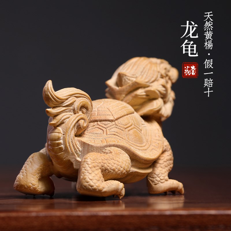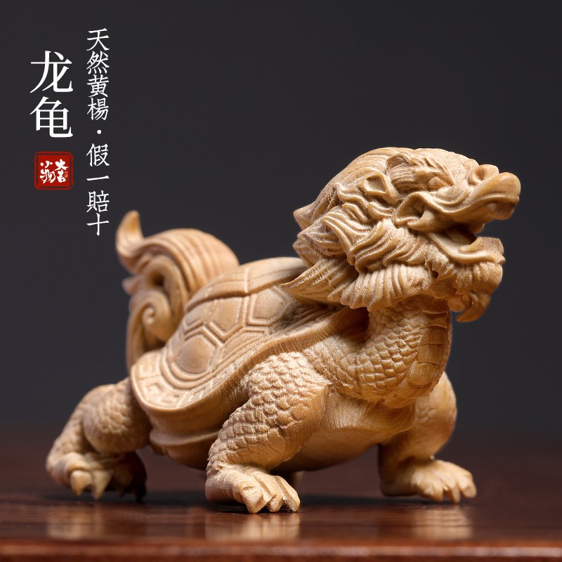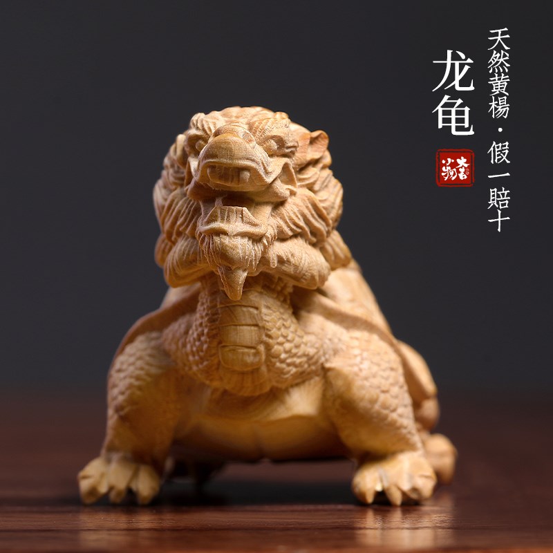 极速小叶黄杨木雕八卦龙r龟摆件吉祥瑞兽文玩手把件桌面茶宠茶玩