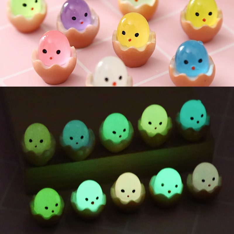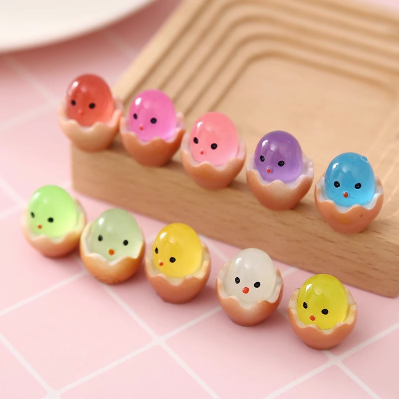 迷你发光卡通鸡蛋壳摆件diy饰品桌面装饰树脂可爱创意玩具鸡蛋仔