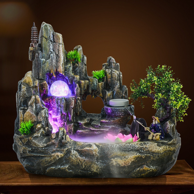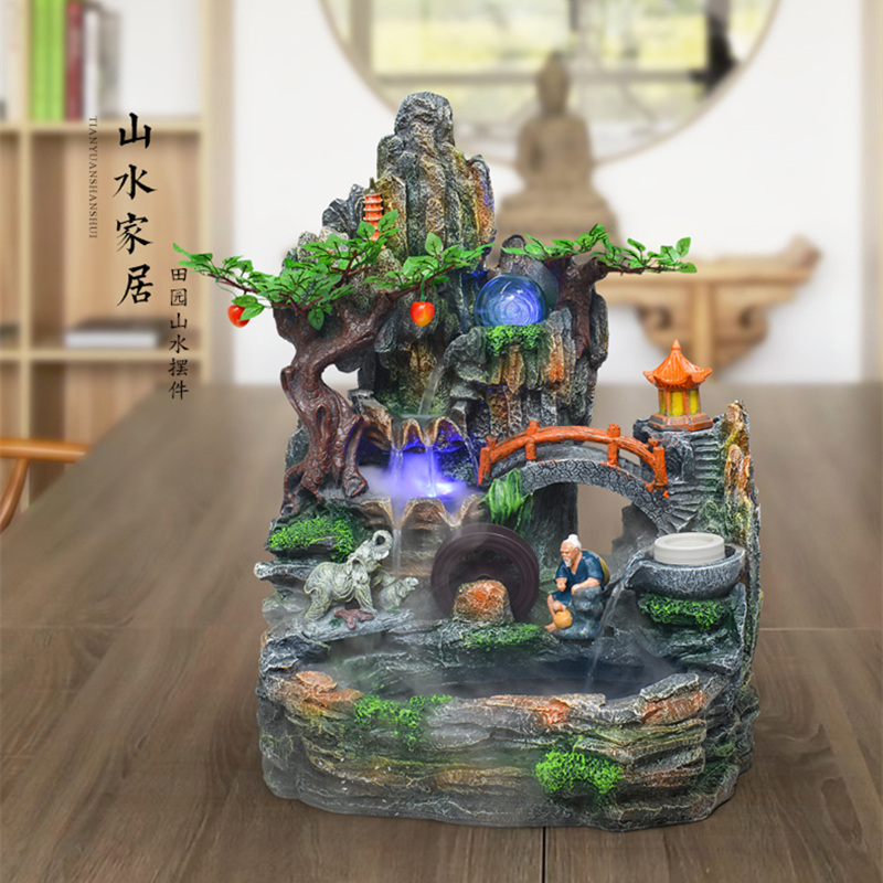 假山流水喷泉摆件鱼池客厅室内加湿器山水盆景观桌面装饰礼品送礼