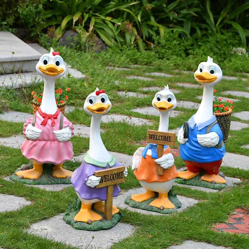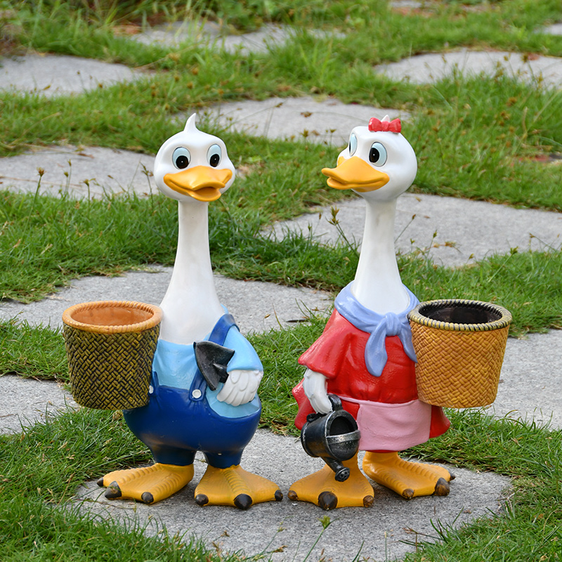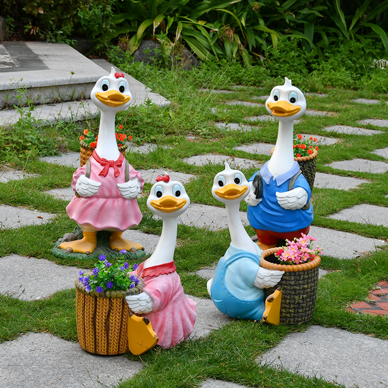 户外玻璃钢雕塑仿真动物摆件花园庭院卡通鸭子花盆幼儿园装饰小品