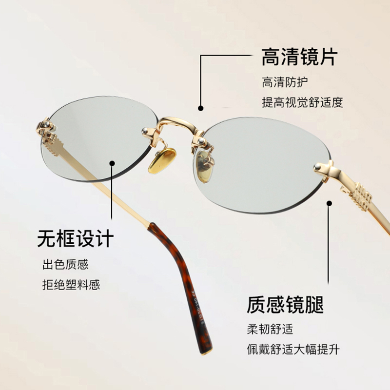 赵今麦同款无框椭圆墨镜女款2025新款高级感适合小脸近视带度数