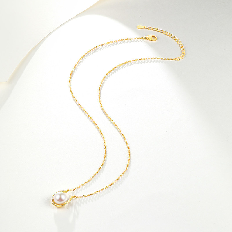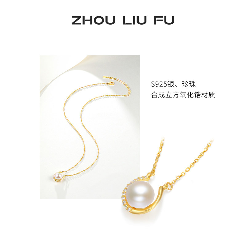 周六福项链淡水珍珠项链S925银黄金色小众气质送女友圣诞礼物