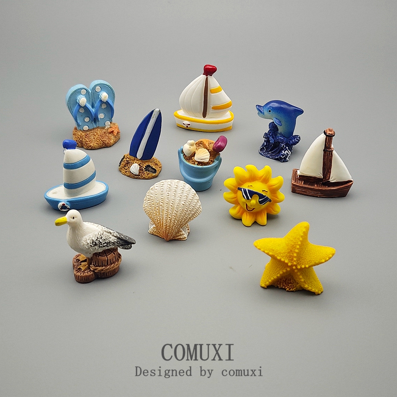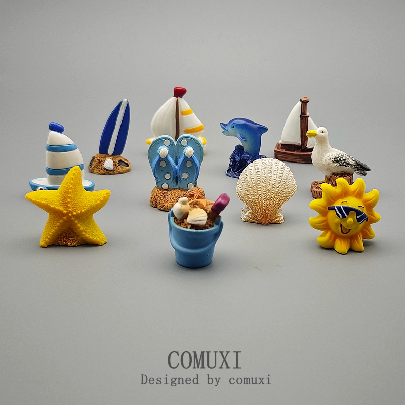 微景观摆件 海边系列冲浪板海贝海鸟海豚海星帆船沙滩桶 树脂模型