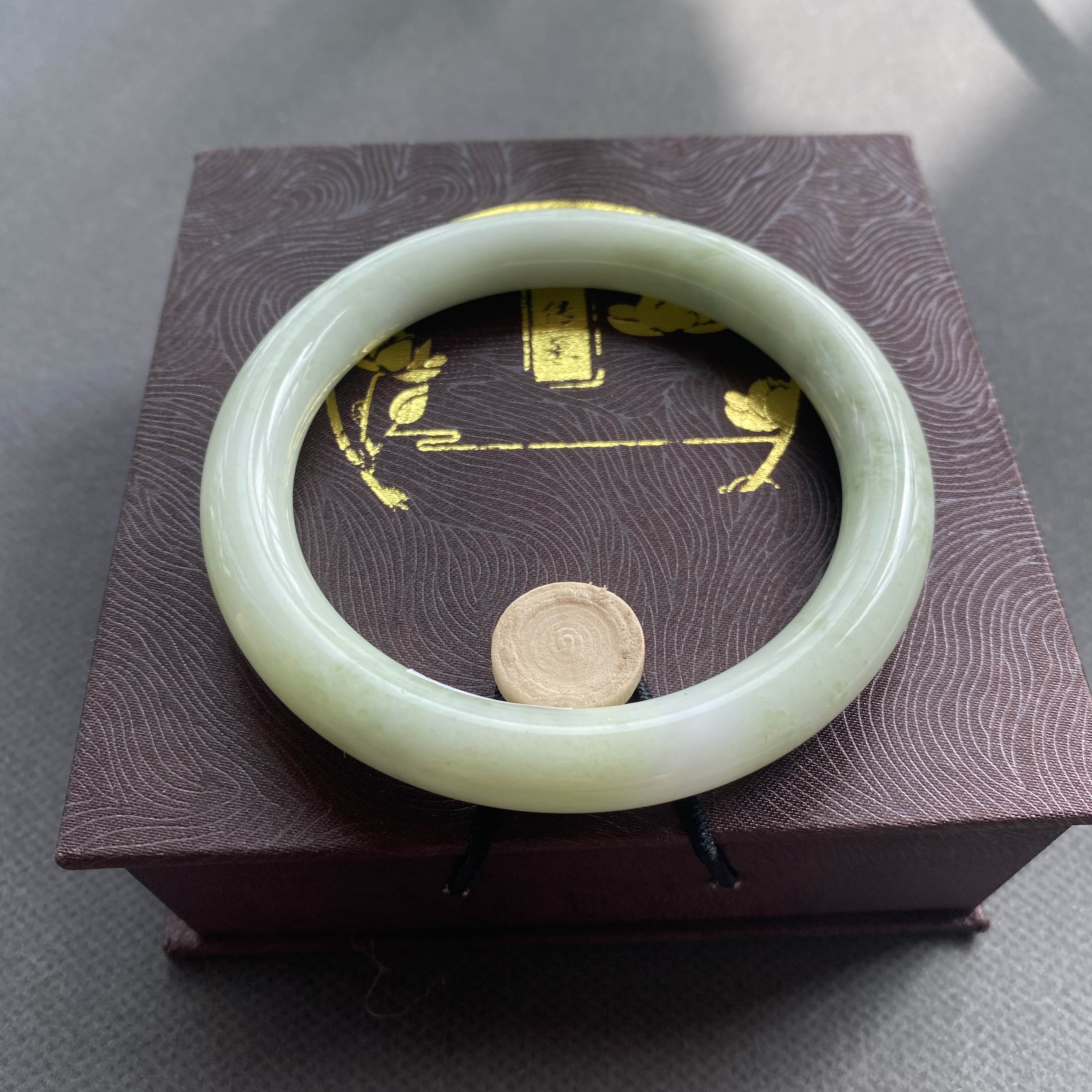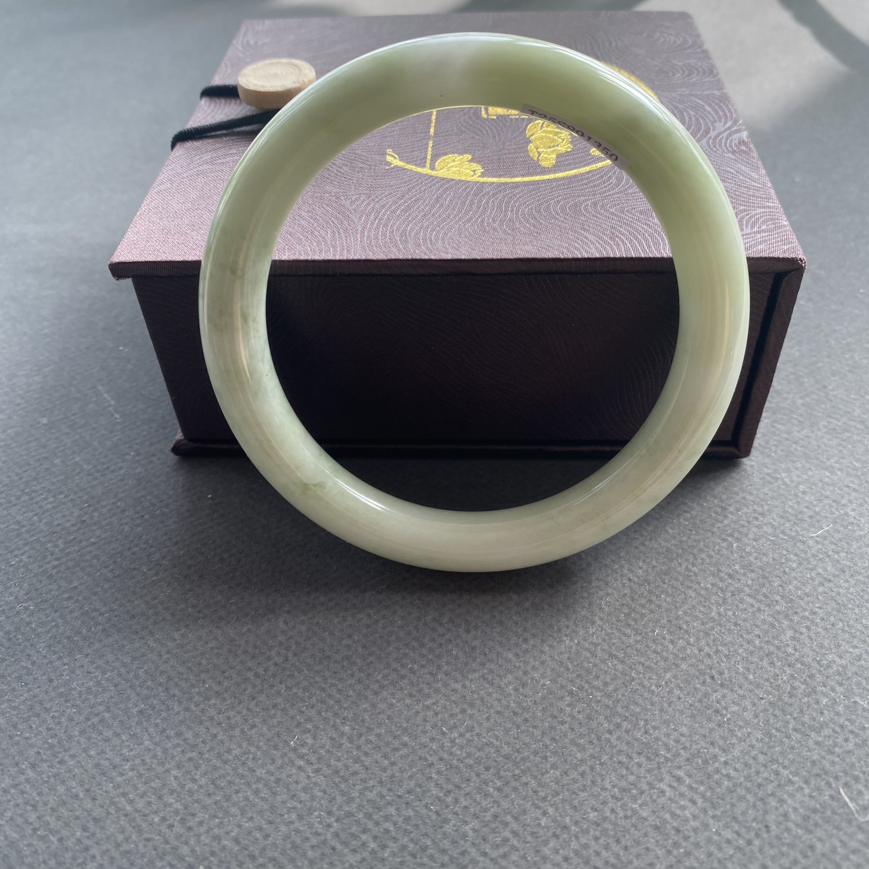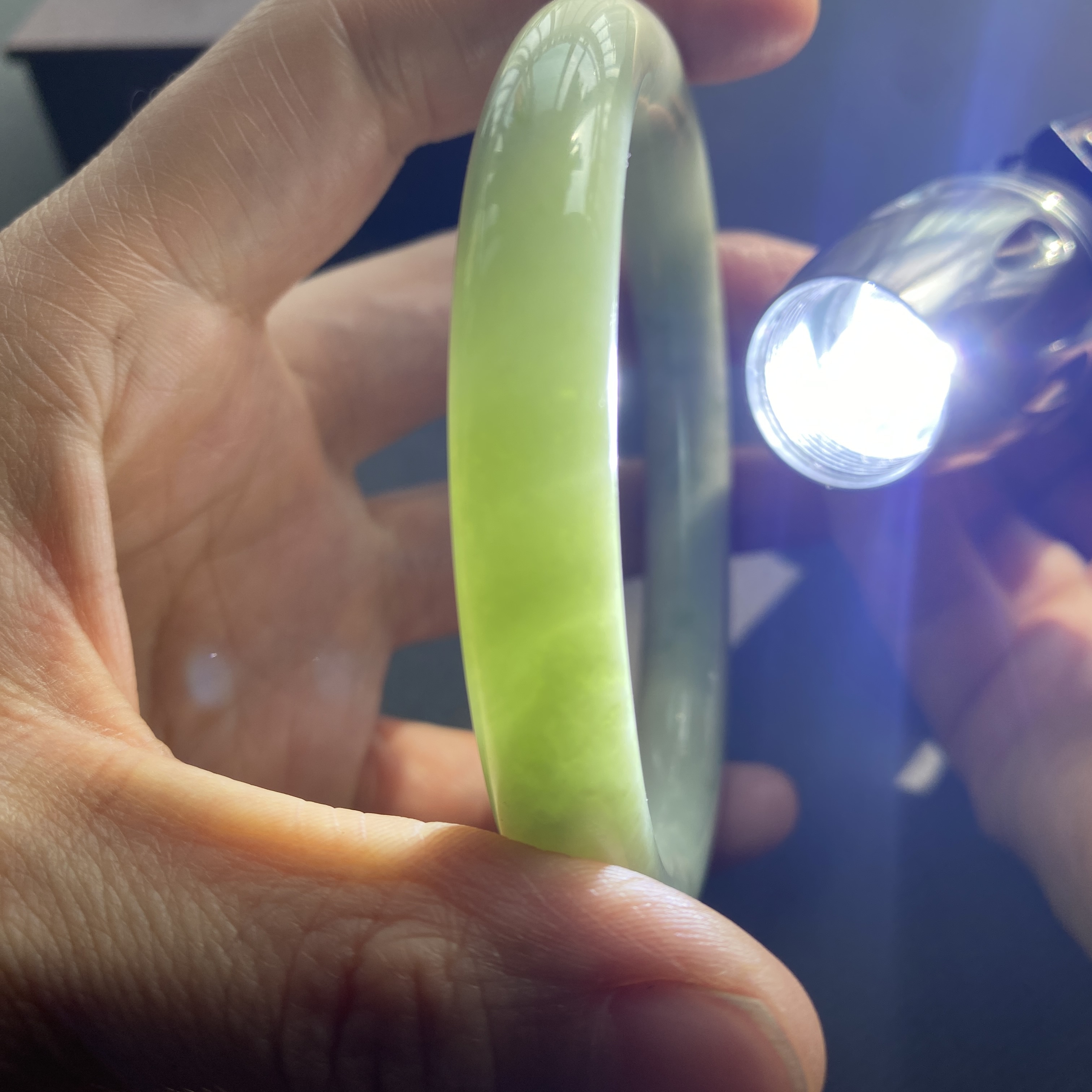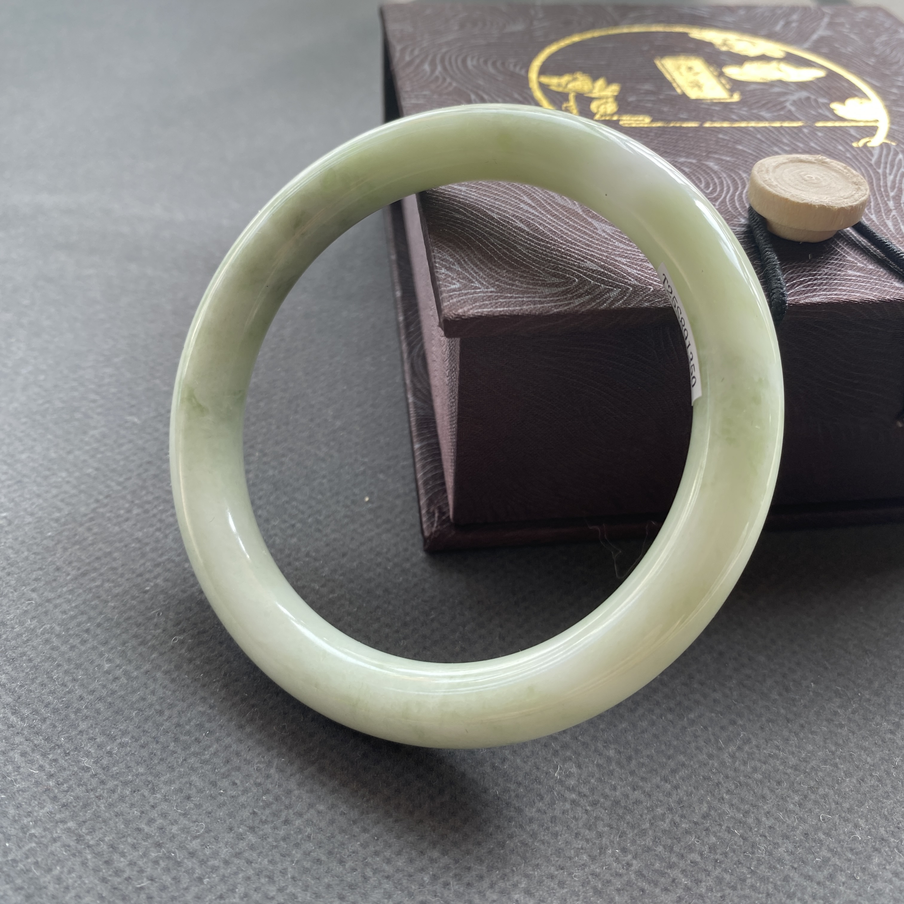 陕西蓝田玉手镯翠玉圆条条宽10mm绿底飘花老料镯子带证书礼盒包邮