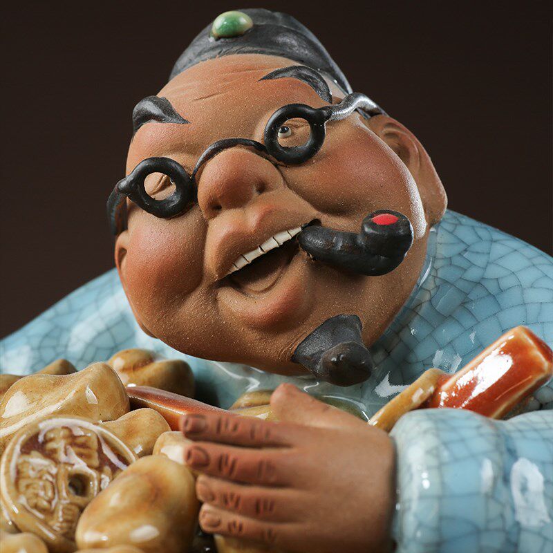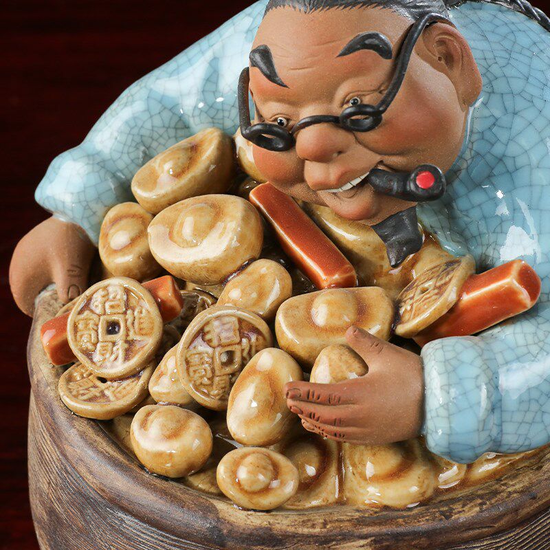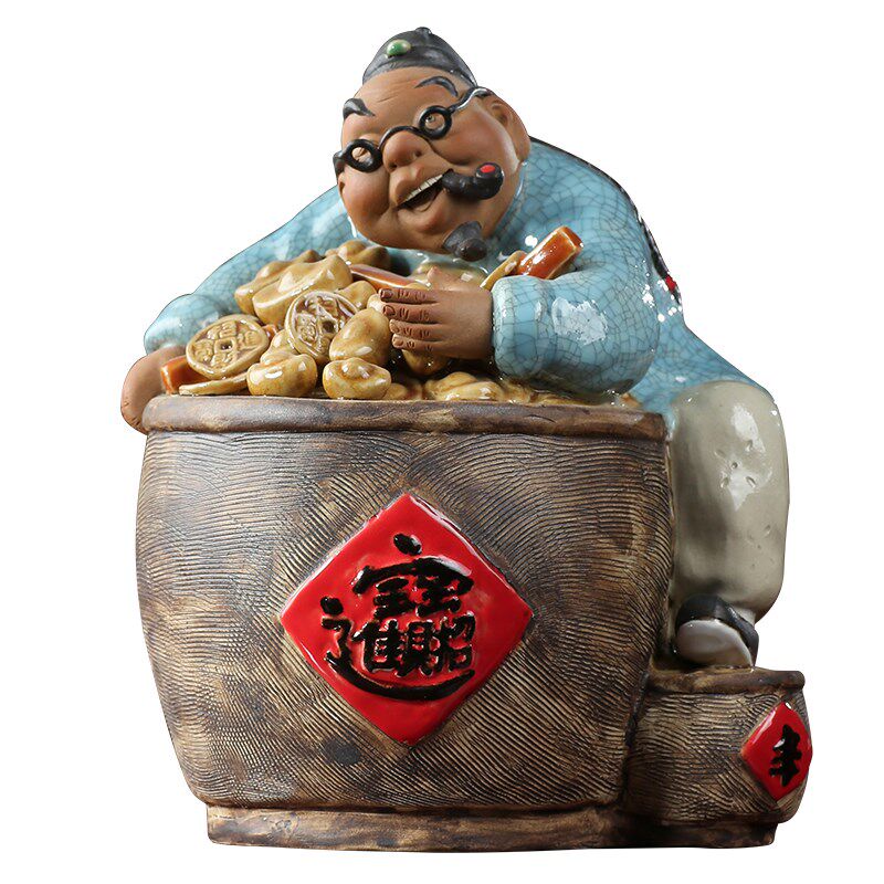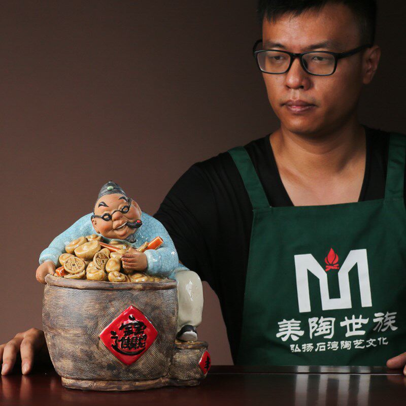 石湾陶瓷公仔工艺礼精品中式家居门客厅招财装饰人物盘满钵满摆件