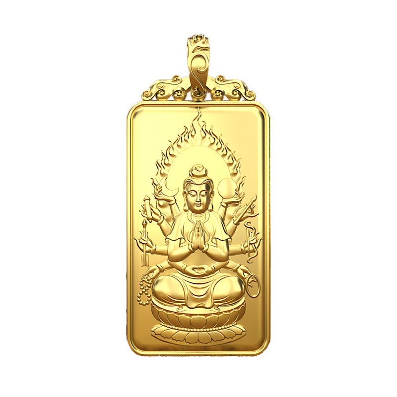 999纯银本命佛吊坠千手观音生肖守护神项链男女本命佛项坠银牌