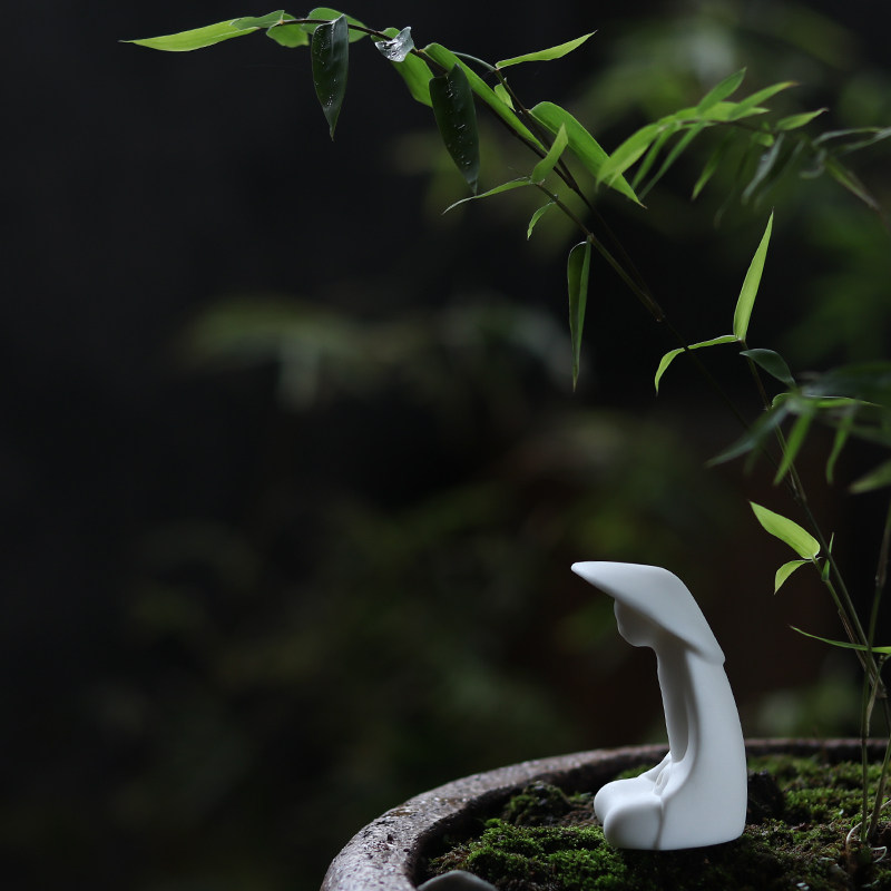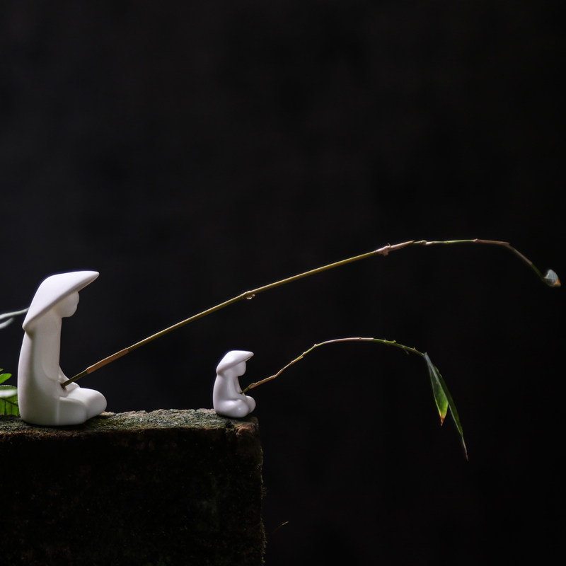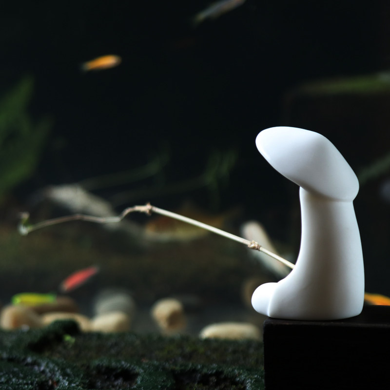 姜太公钓鱼摆件微景观陶瓷小船人物鱼缸水族流水S假山造景盆景装