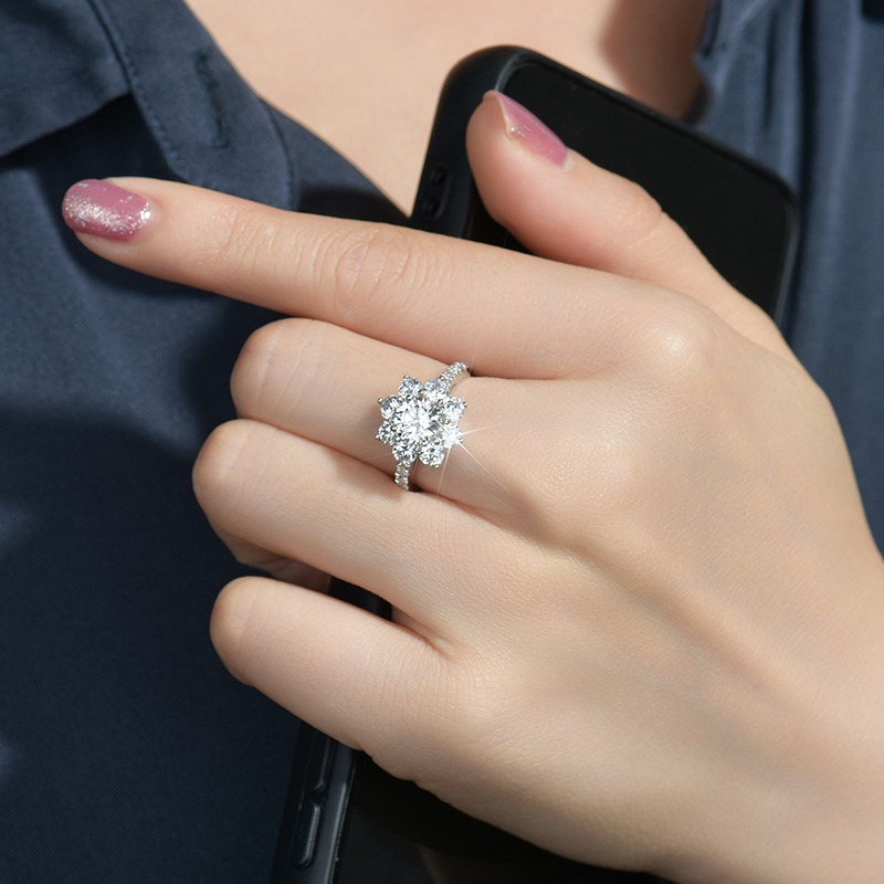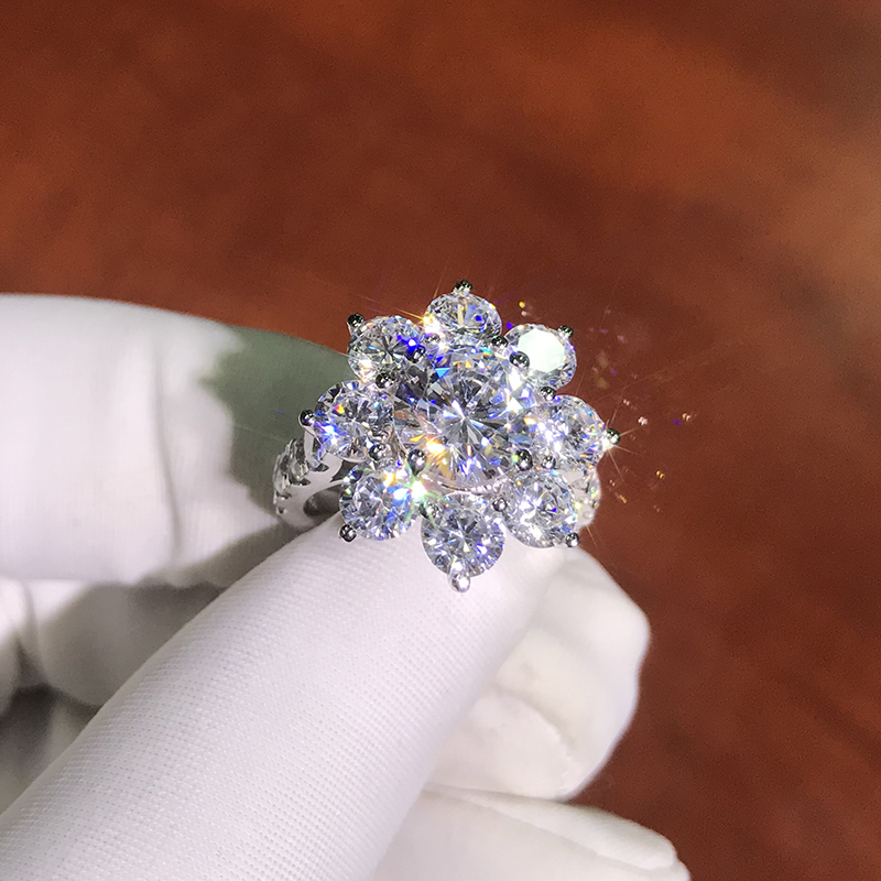 卓蝶珠宝HW向日葵钻戒纯银莫桑石钻戒太阳花仿钻石戒指女戒婚戒